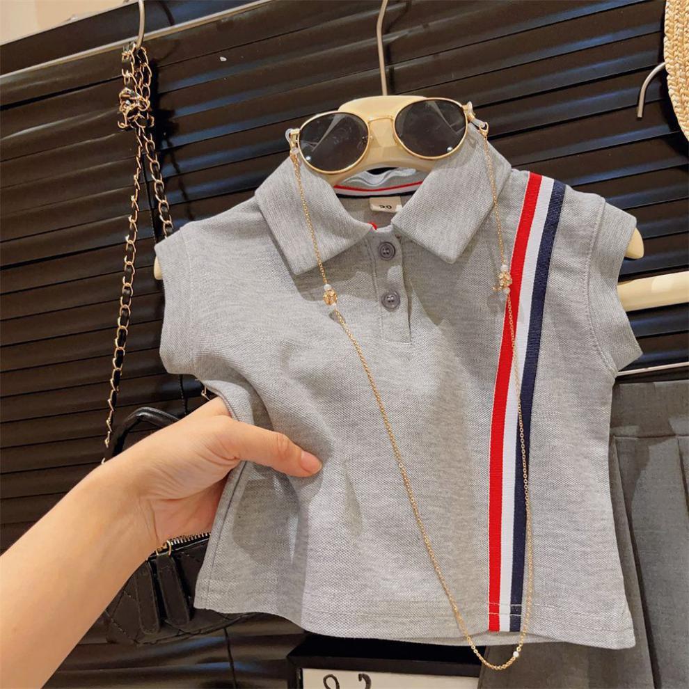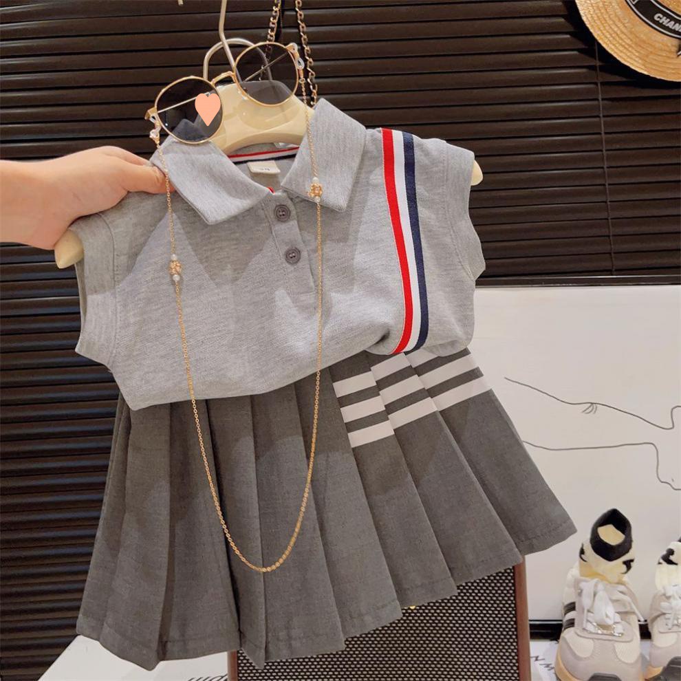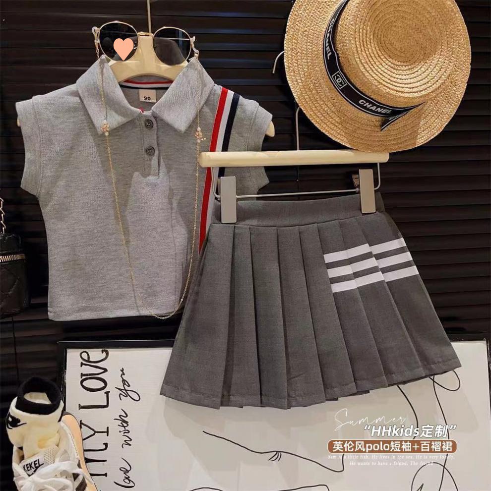 • 회색 폴로 주름 치마 (안전 바지 포함)