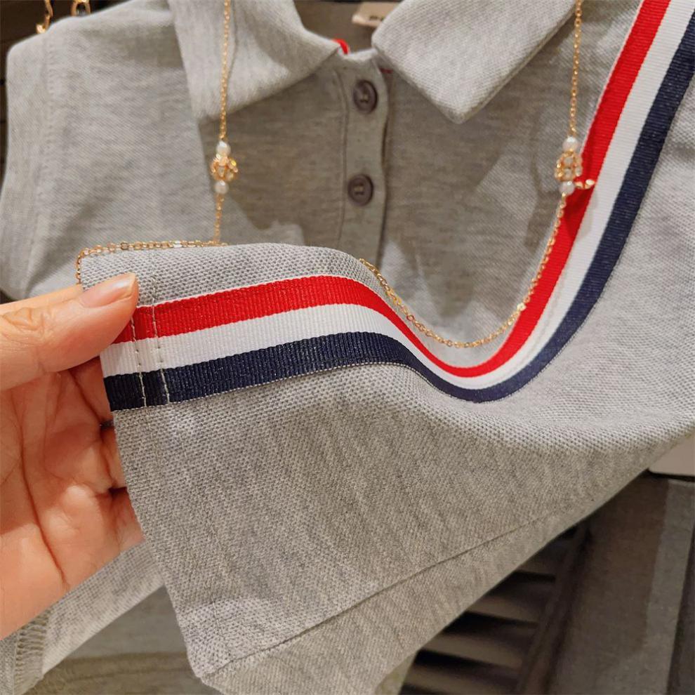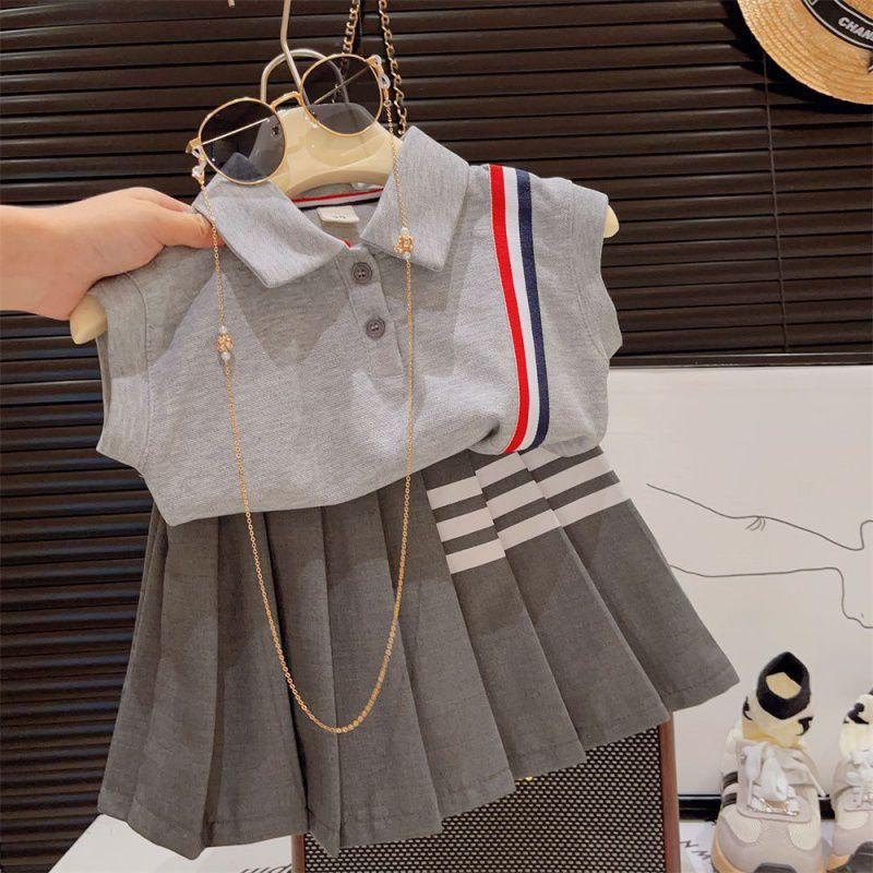 소녀의 여름 새로운 스타일 웨스턴 스타일 영국 아카데미 스타일 폴로 칼라 스트라이프 배트 모빌 셔츠 주름 스커트 여름 28050스토어 가기