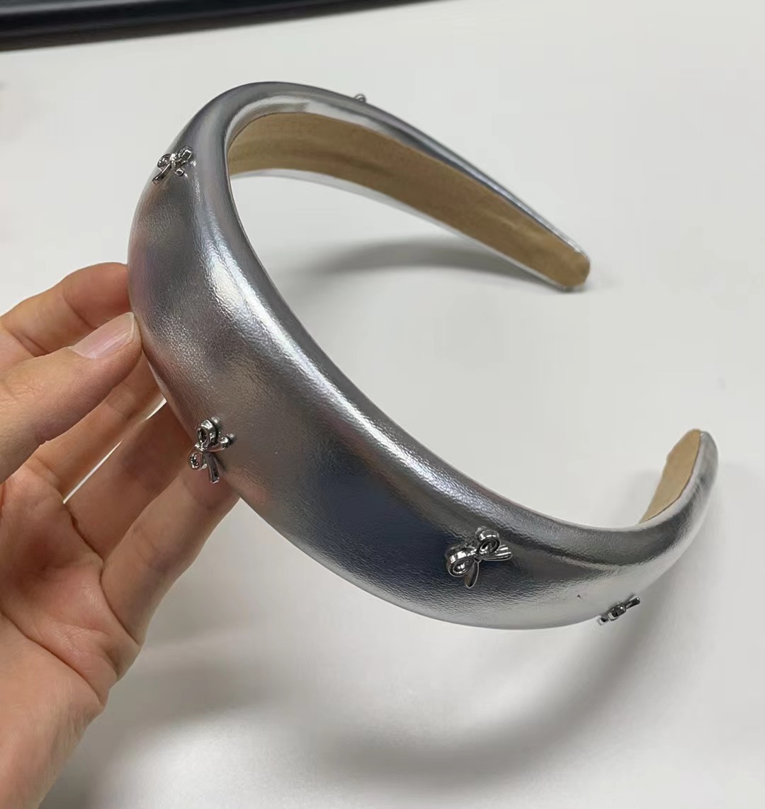 실버 pu 가죽 활 머리띠 높은 두개골 최고 기질 머리띠 사이드 앞머리 머리핀 여성 머리 장식