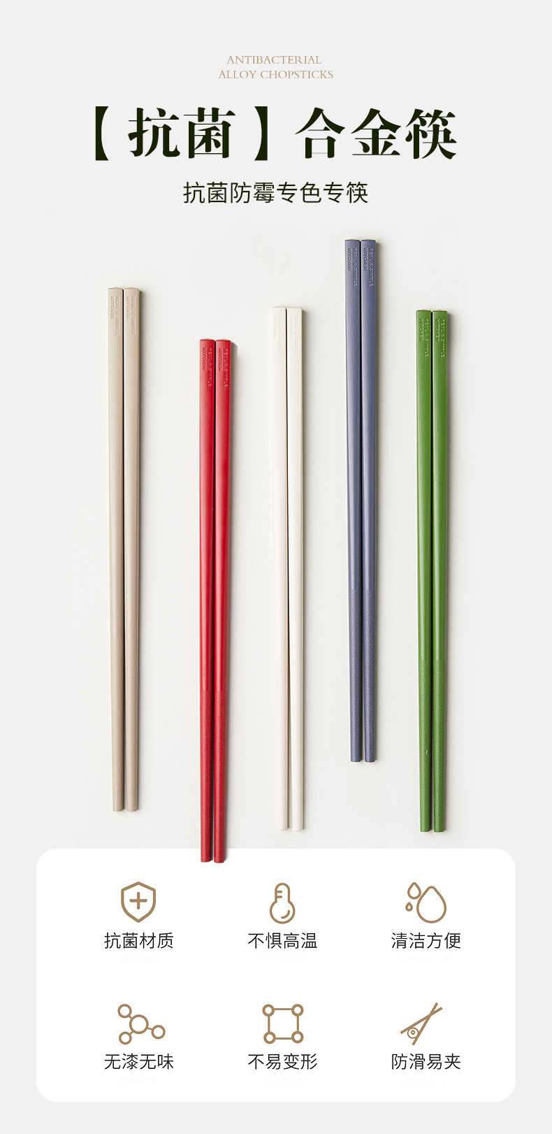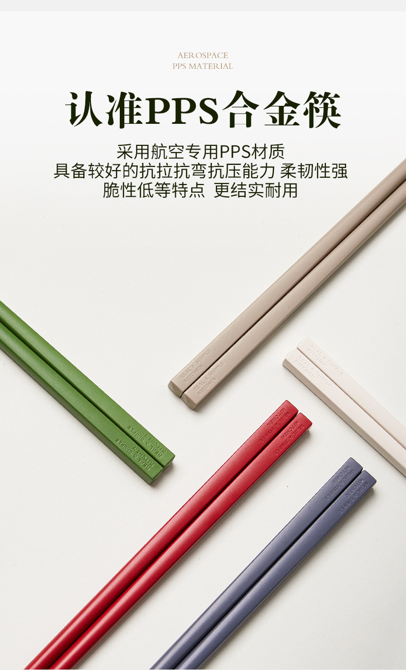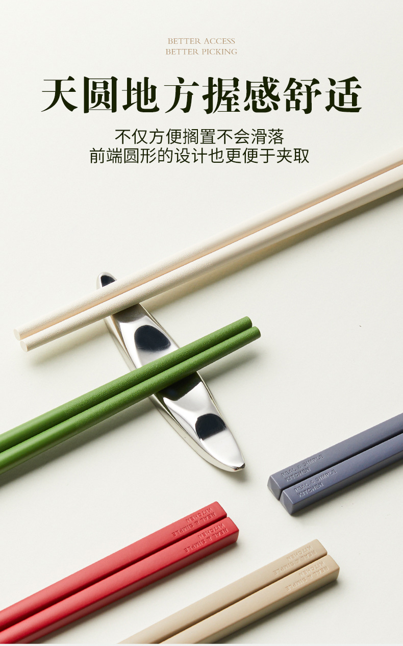 현대 주부 젓가락 가정용 마카롱 항균 및 곰팡이 방지 더블 건 합금 젓가락 새로운 미끄럼 방지 및 고온 방지 젓가락