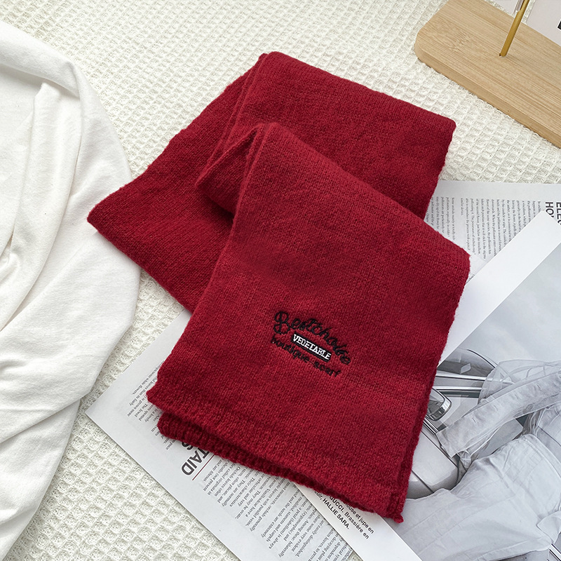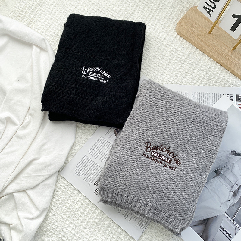한국 스타일 가을 겨울 여성용 단색 중간 길이 패션 심플 다용도 방풍 보온 스카프 자수 글자 커플 목도리