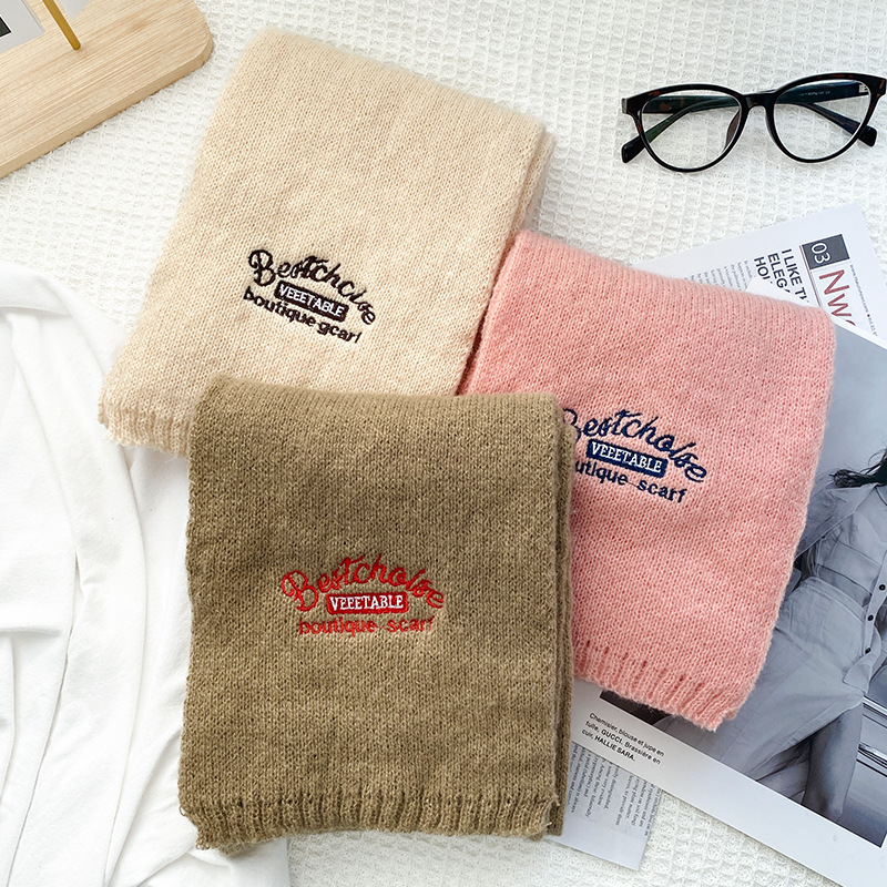 한국 스타일 가을 겨울 여성용 단색 중간 길이 패션 심플 다용도 방풍 보온 스카프 자수 글자 커플 목도리스토어 가기