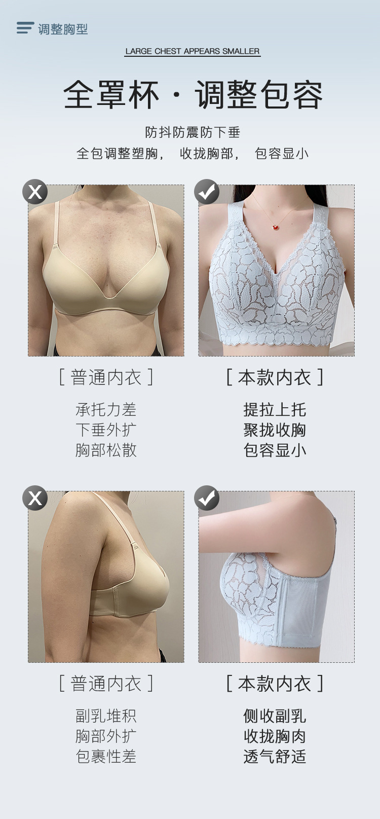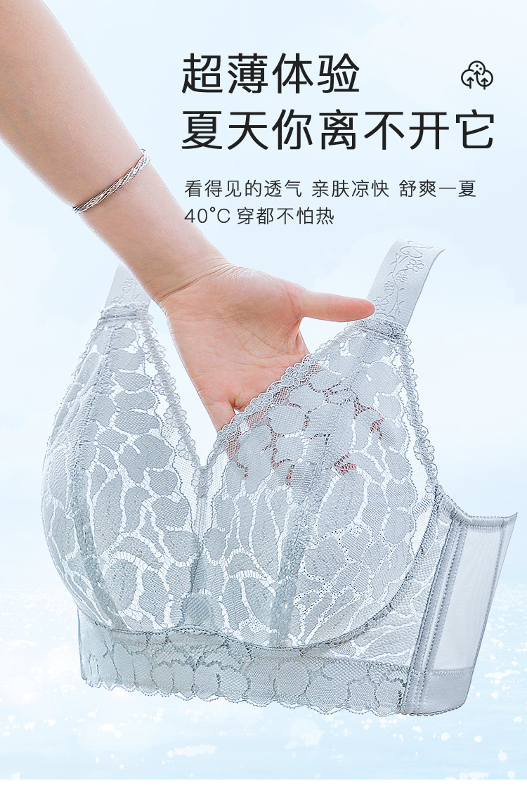레이스 속옷 여름 얇은 여성의 모이기 강철 반지 아름 다운 등 브래지어 큰 가슴 작은 처짐 방지 파라 유방 브래지어스토어 가기