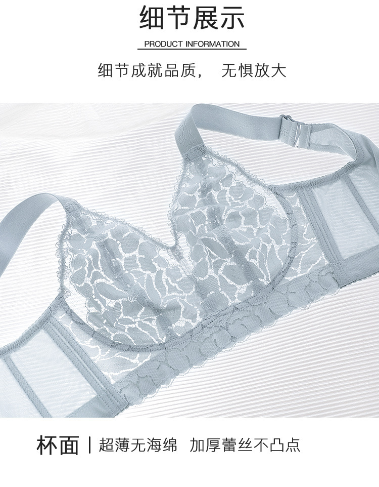 레이스 속옷 여름 얇은 여성의 모이기 강철 반지 아름 다운 등 브래지어 큰 가슴 작은 처짐 방지 파라 유방 브래지어