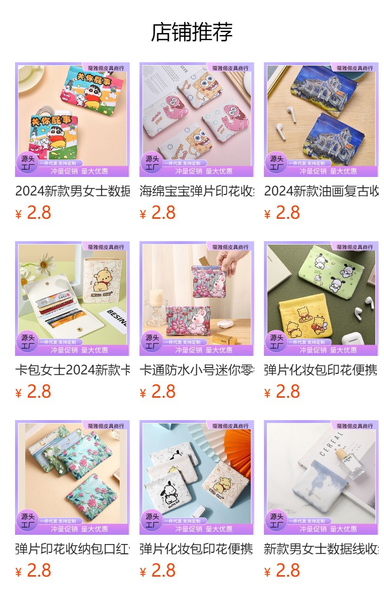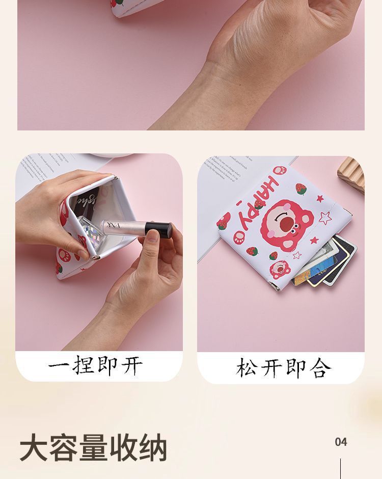 새로운 만화 데이터 케이블 저장 가방 자동 폐쇄 파우치 휴대용 메이크업 입 빨간 가방 여성 파편 동전 지갑스토어 가기