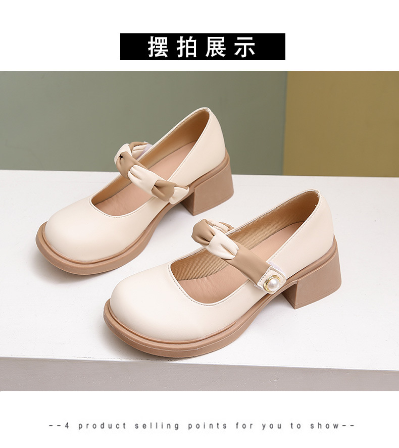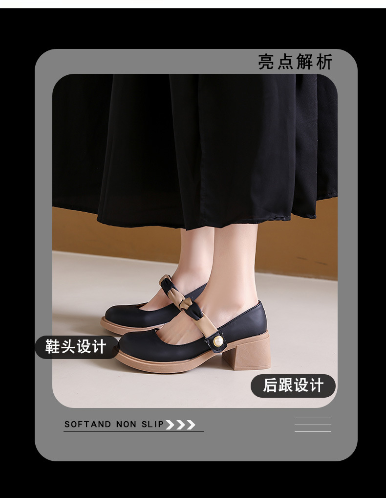 메리 제인 작은 가죽 신발 여성의 봄과 가을 2024 새로운 인터넷 인기있는 하이힐 여성의 청키 힐 얕은 입 요정 스타일 싱글 신발스토어 가기