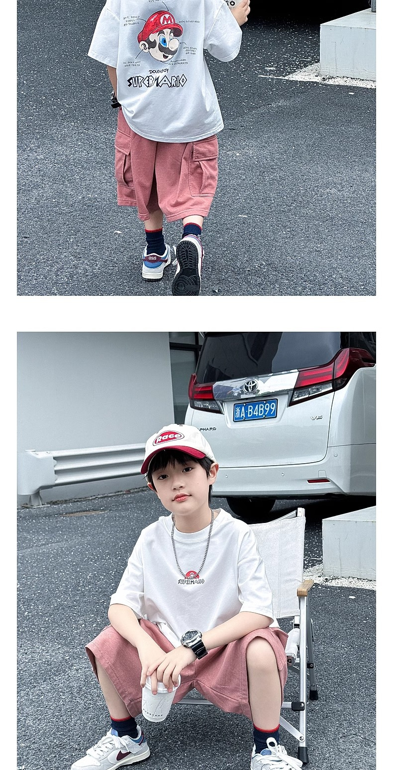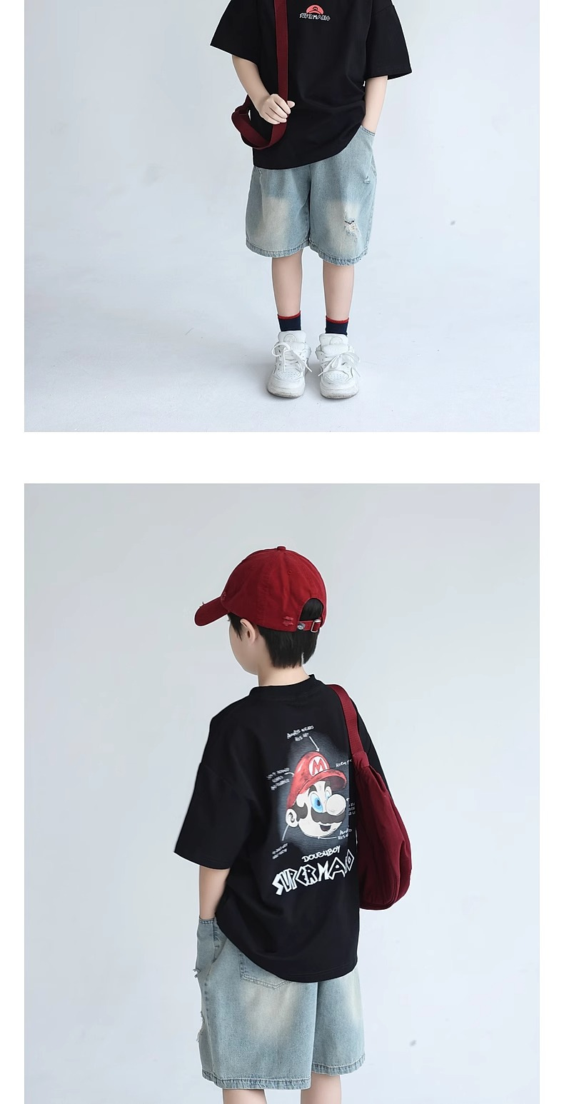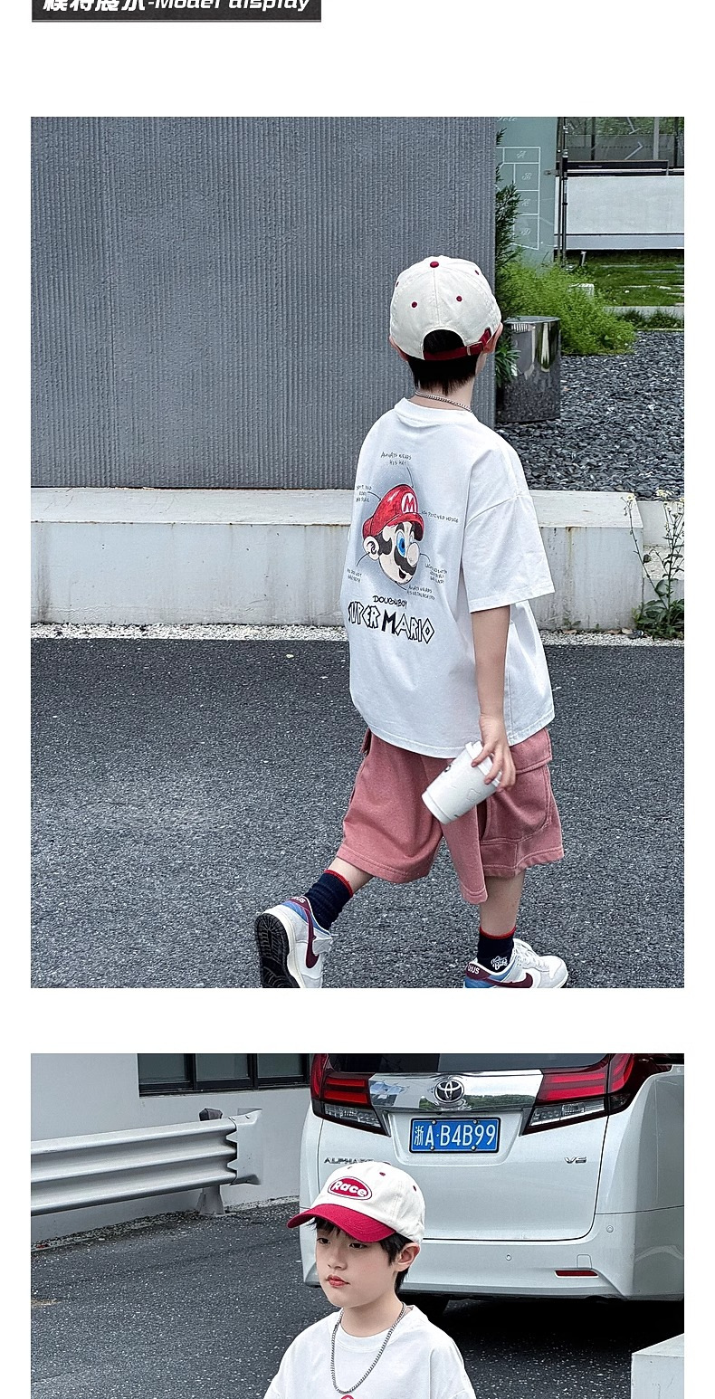 소년 반팔 티셔츠 어린이 여름 2024 여름 새로운 도착 소년 느슨한 만화 탑 유행 브랜드 뚱뚱한 잘 생긴 티셔츠스토어 가기