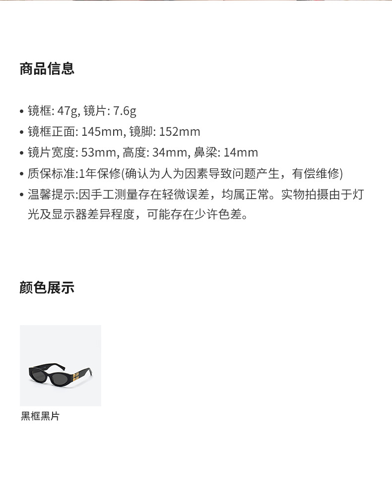MIU Miaojia 고양이의 눈 선글라스 SMU 11W 선글라스 여성 플레이트 UV 보호 UV400 심천 기원