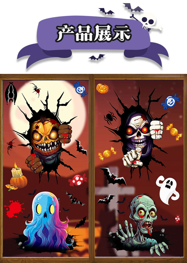할로윈 스티커 파티 장식 공포 재미있는 해골 호박 머리 유리 스티커 죽음의 유령 창 스티커스토어 가기