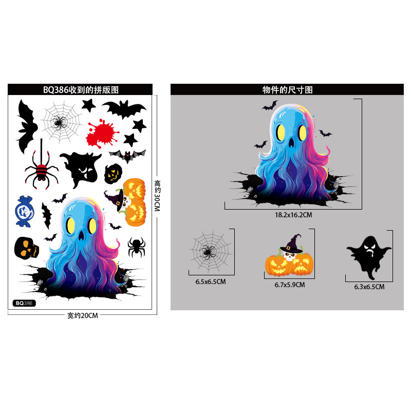 할로윈 스티커 파티 장식 공포 재미있는 해골 호박 머리 유리 스티커 죽음의 유령 창 스티커