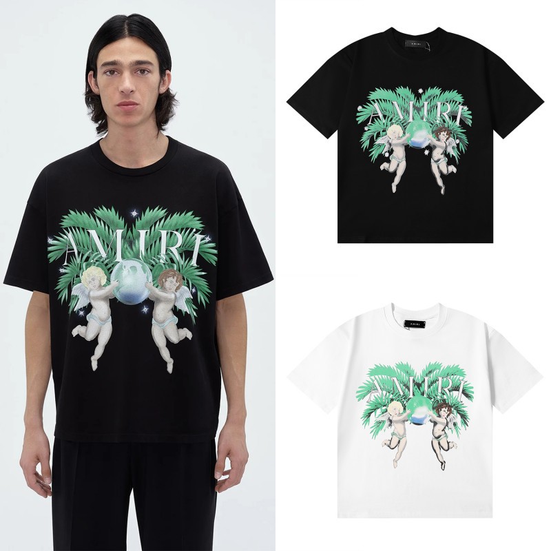 도매 새로운 작은 천사 크레인 평화 비둘기 숫자 그라데이션 문자 로고 커플 복장 반팔 티셔츠스토어 가기