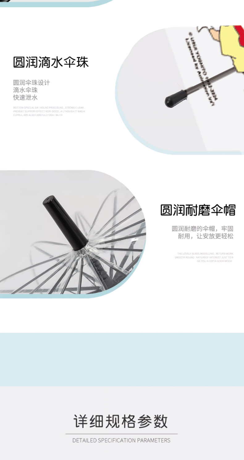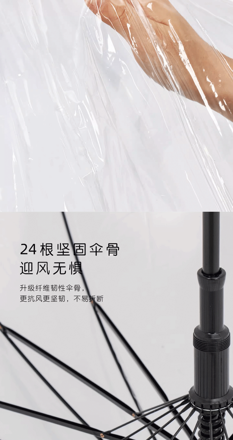 지유 크레용 작은 새로운 투명 우산 남성과 여성을위한 강한 바람 저항 증가 순수한 투명 우산 긴 손잡이 귀여운 학생 스트레이트 우산