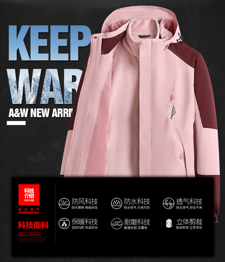 그룹 구매 자수 3 대 1 밍크 벨벳 라이너 2024 가을과 겨울 야외 패딩 방풍 방수 하이 퀄리티 재킷