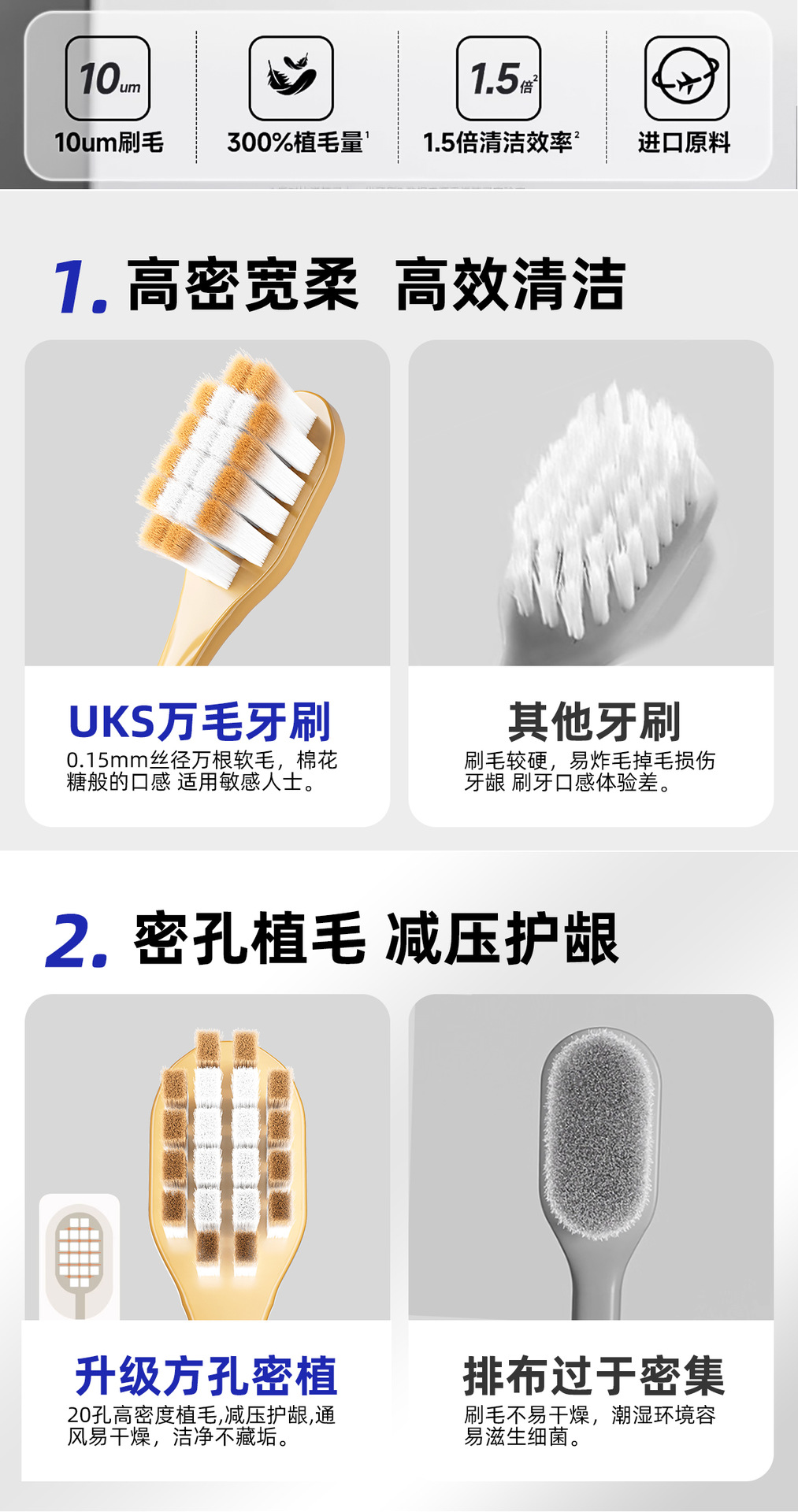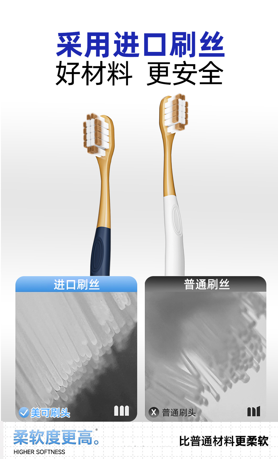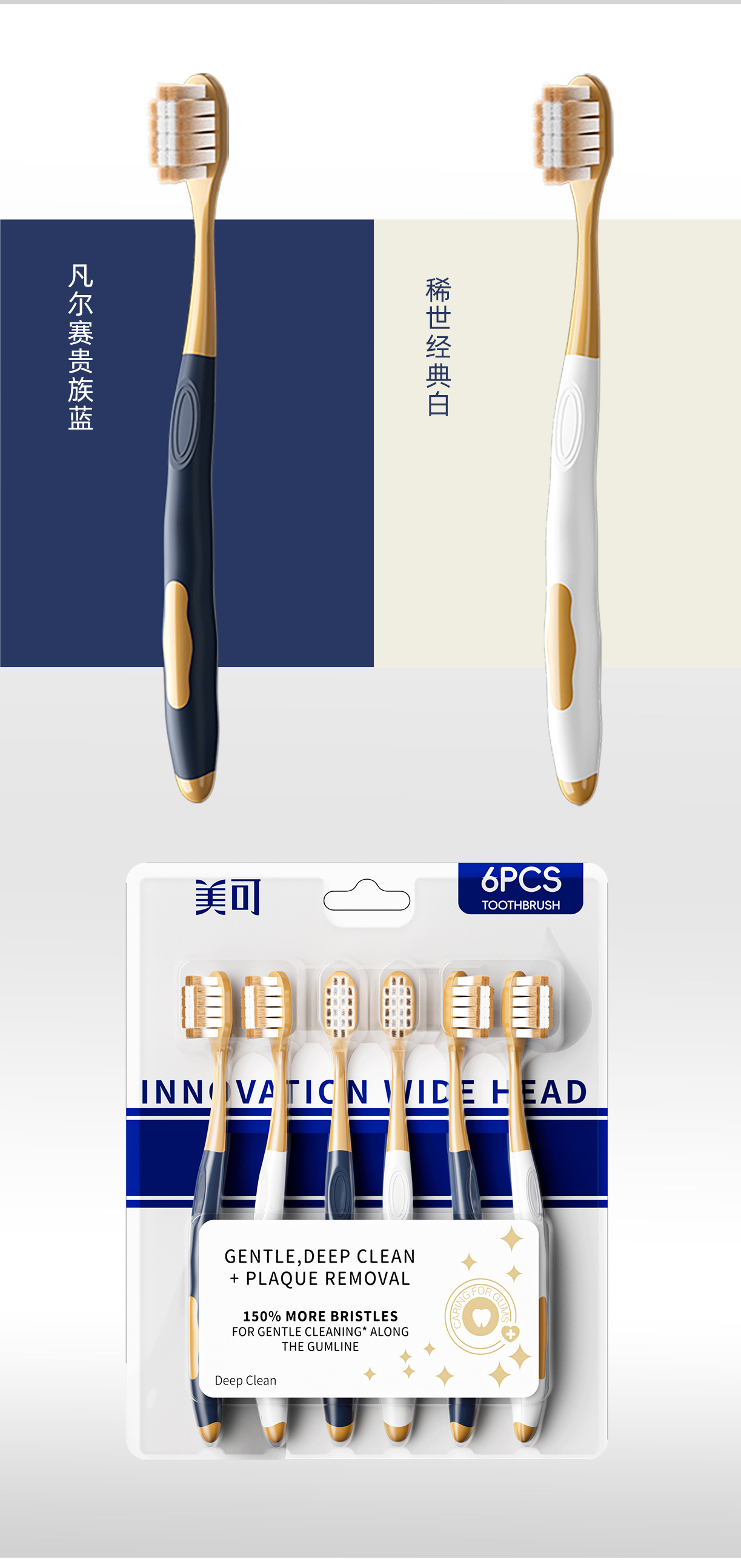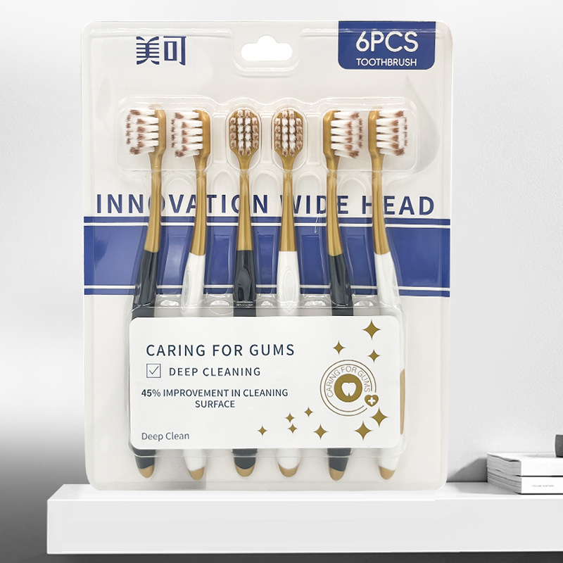 Merco M5297 Sam의 동일한 성인 6 팩 소프트 헤어 칫솔 와이드 헤드 큰 구멍 초밀도 헤어 심기 미끄럼 칫솔 손잡이