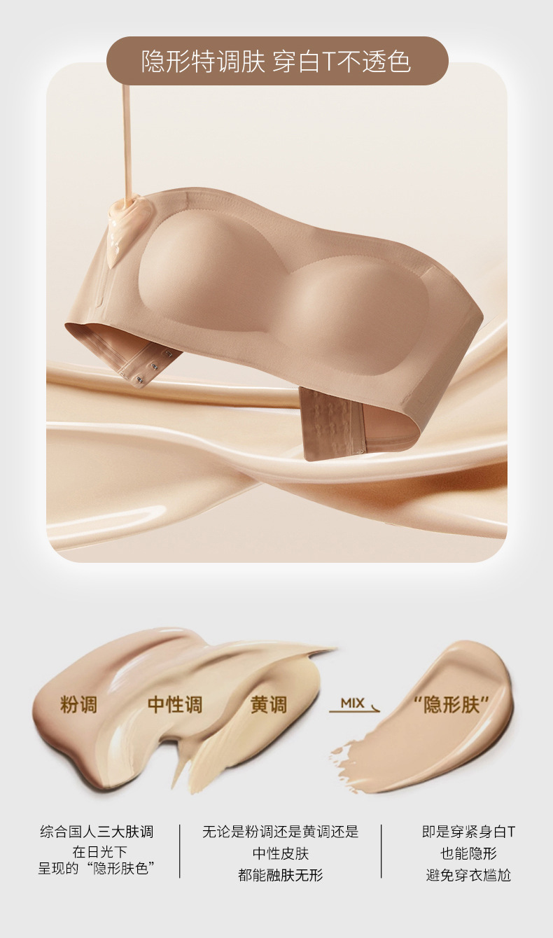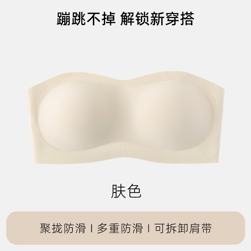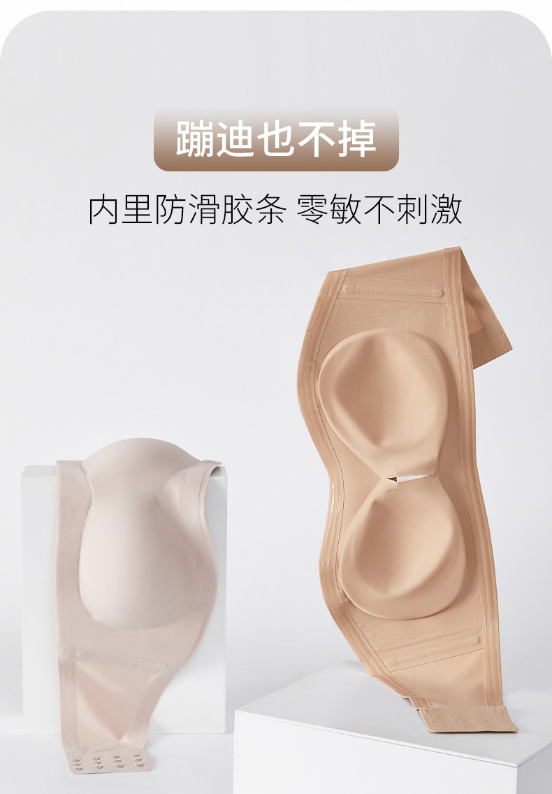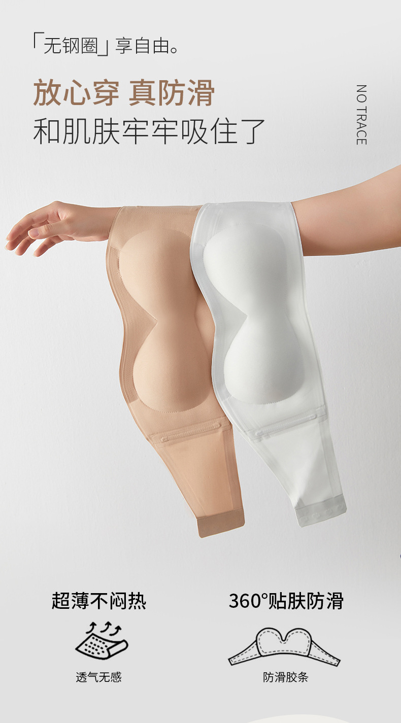 [업그레이드된 4중 미끄럼 방지] 작은 가슴을 가진 여성을 위한 스트랩리스 리퀴드 파운데이션 속옷, 미끄럼 방지 원라인 튜브탑 브라