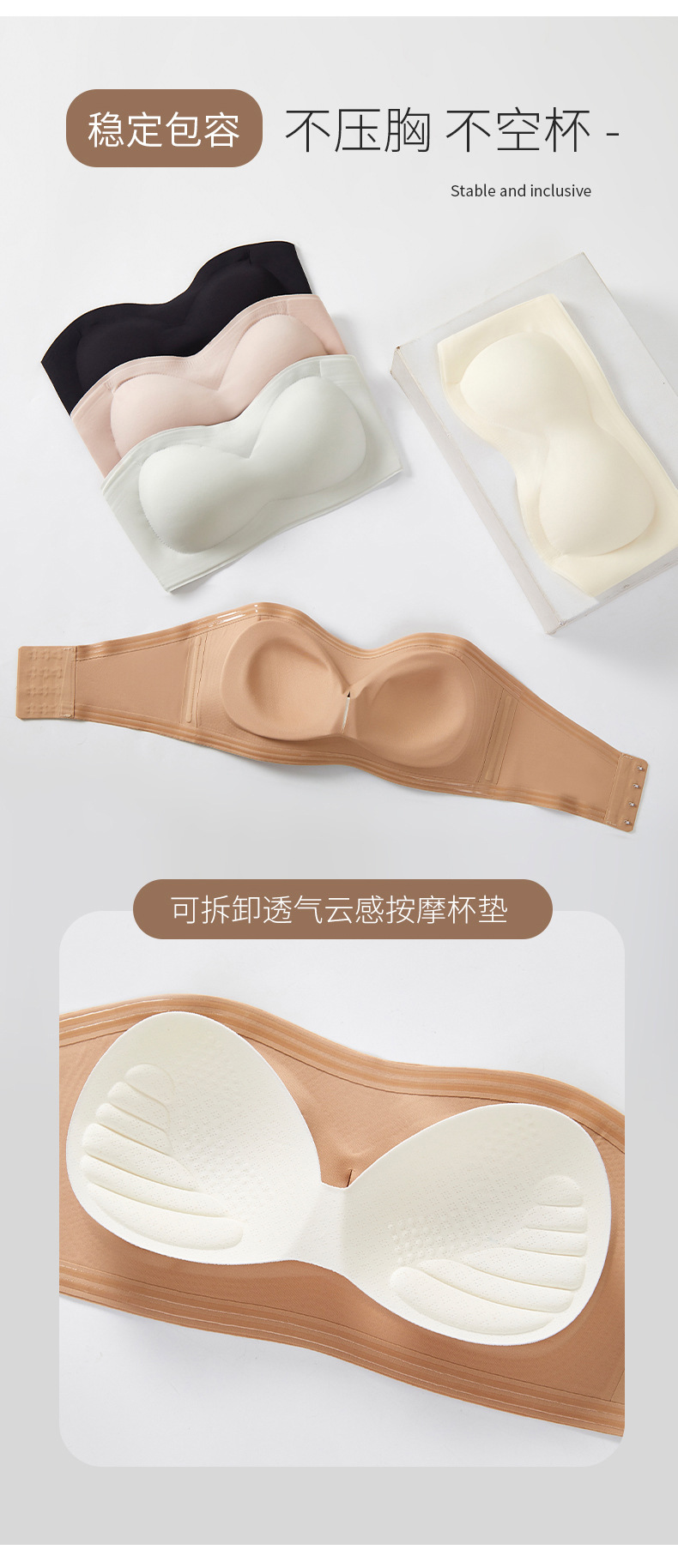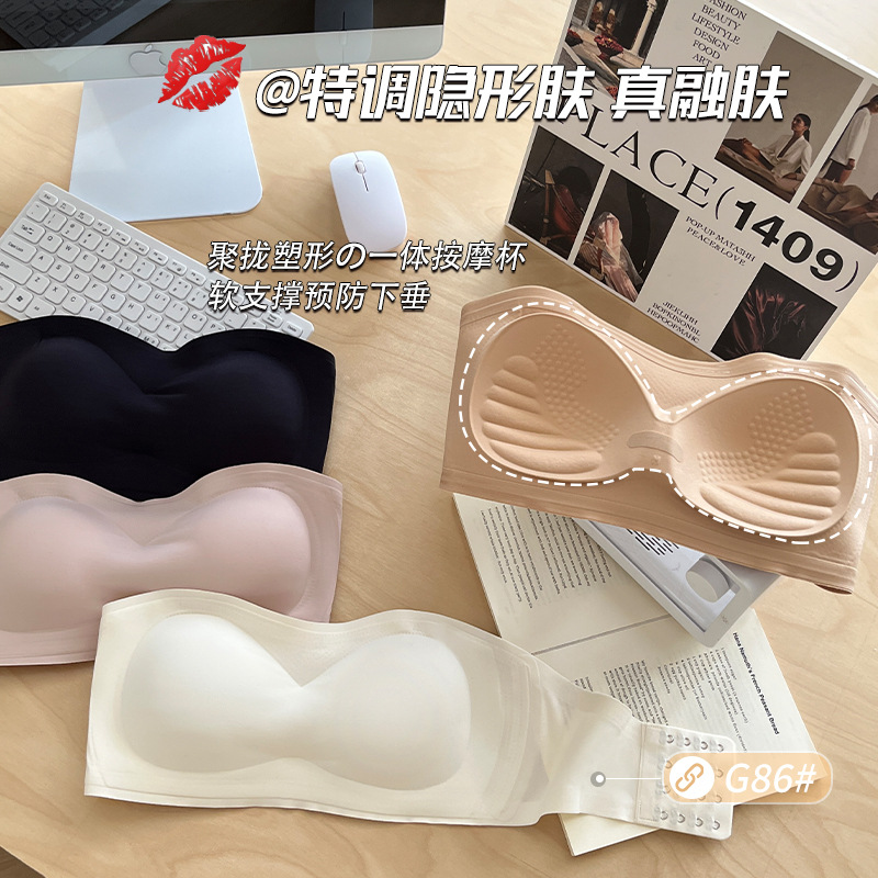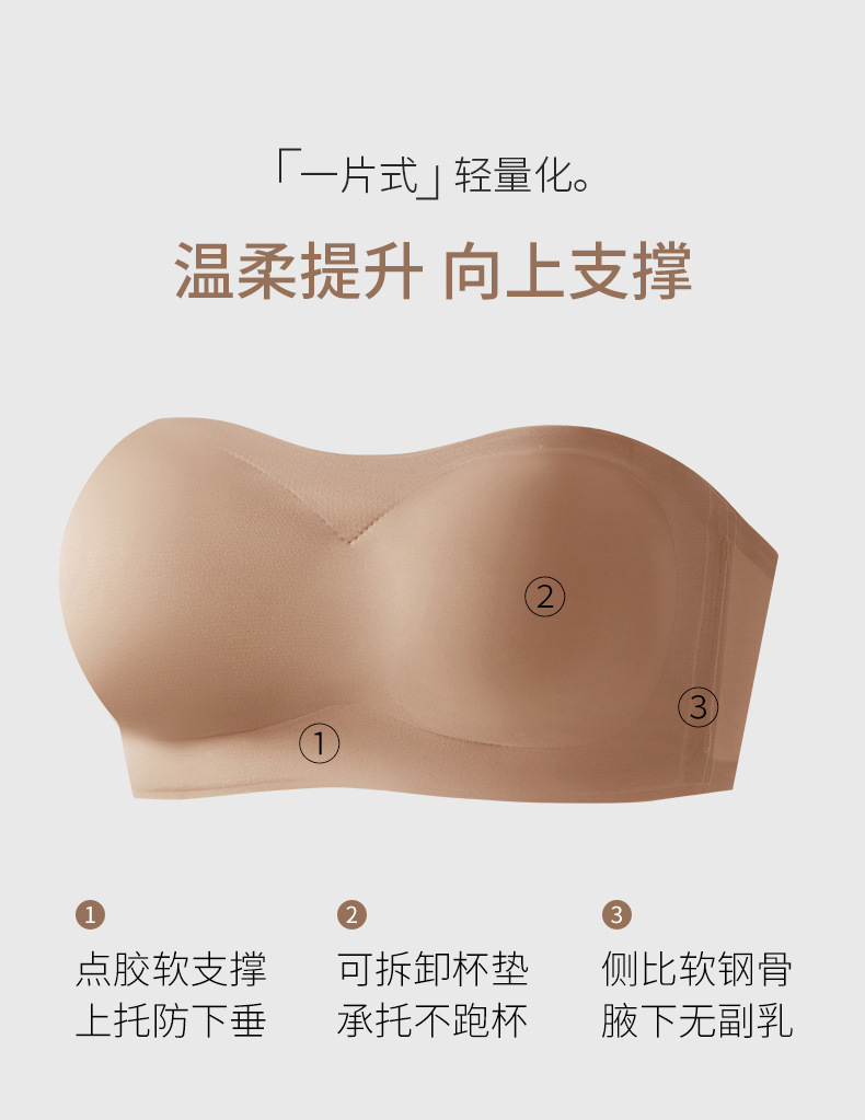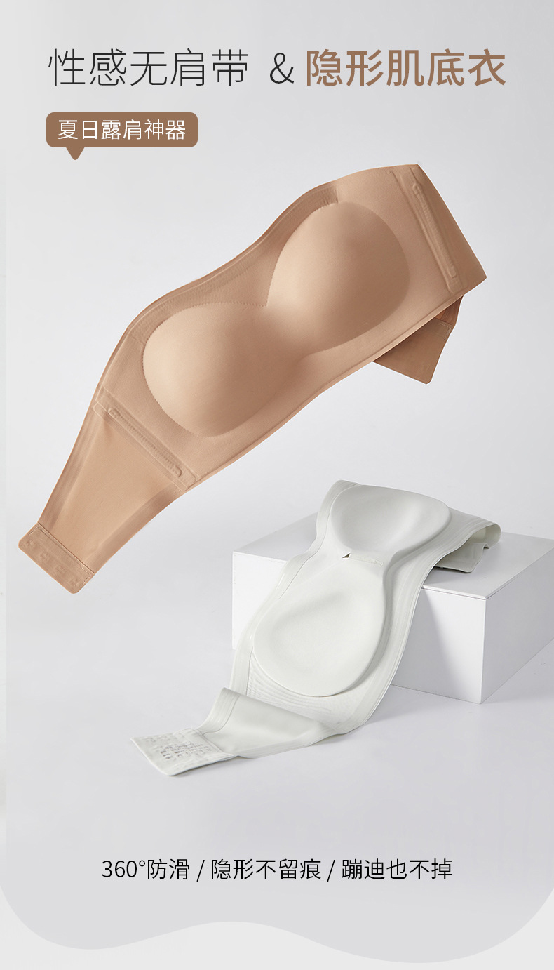 [업그레이드된 4중 미끄럼 방지] 작은 가슴을 가진 여성을 위한 스트랩리스 리퀴드 파운데이션 속옷, 미끄럼 방지 원라인 튜브탑 브라