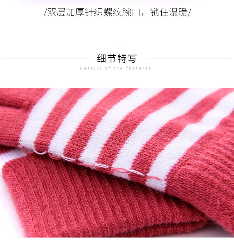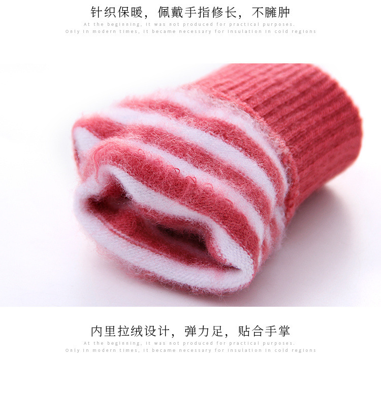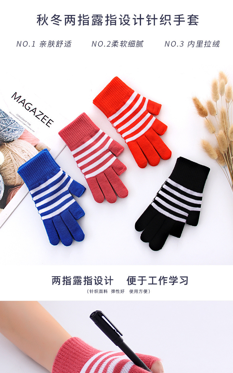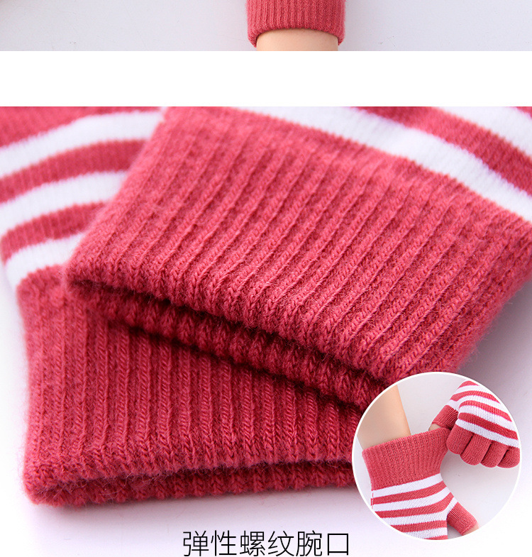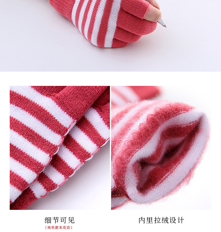줄무늬 두 손가락 터치 스크린 니트 학생 글쓰기 양털 두꺼운 감기 방지 손가락 한국 스타일 여성의 겨울 따뜻한 장갑