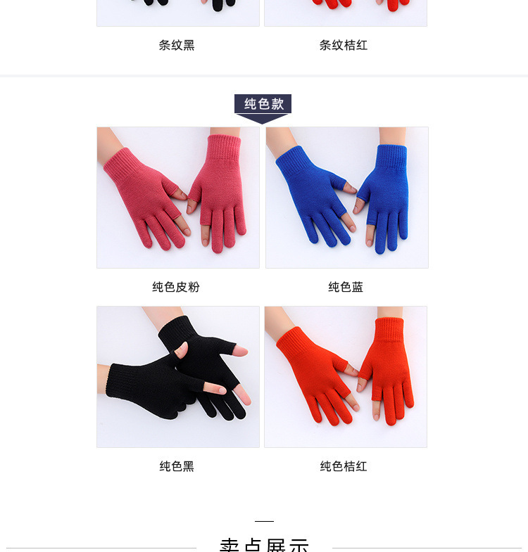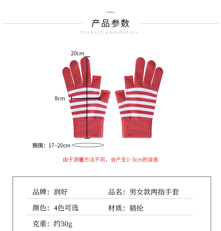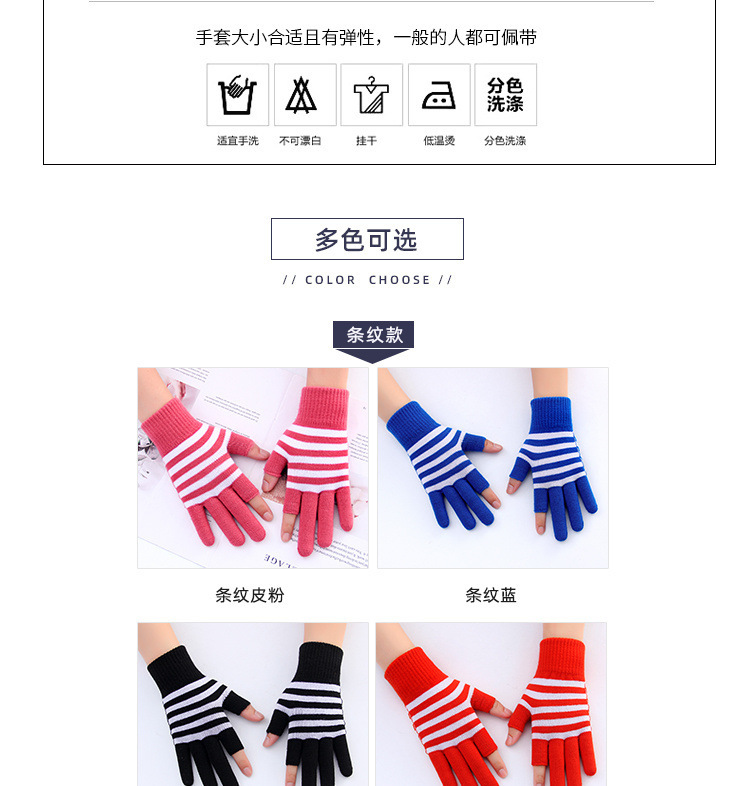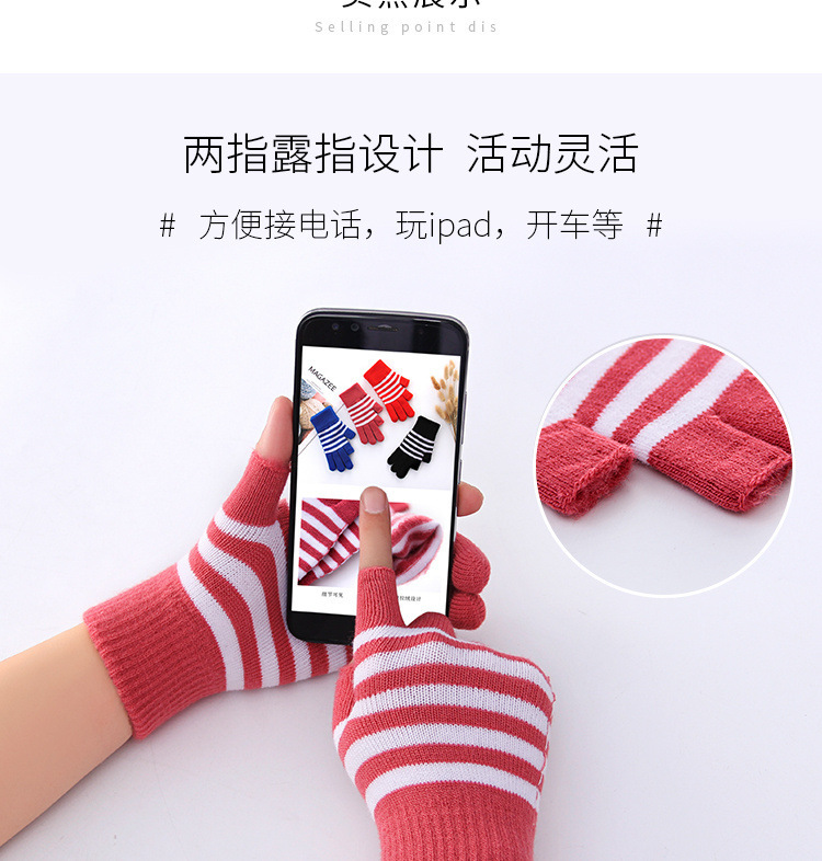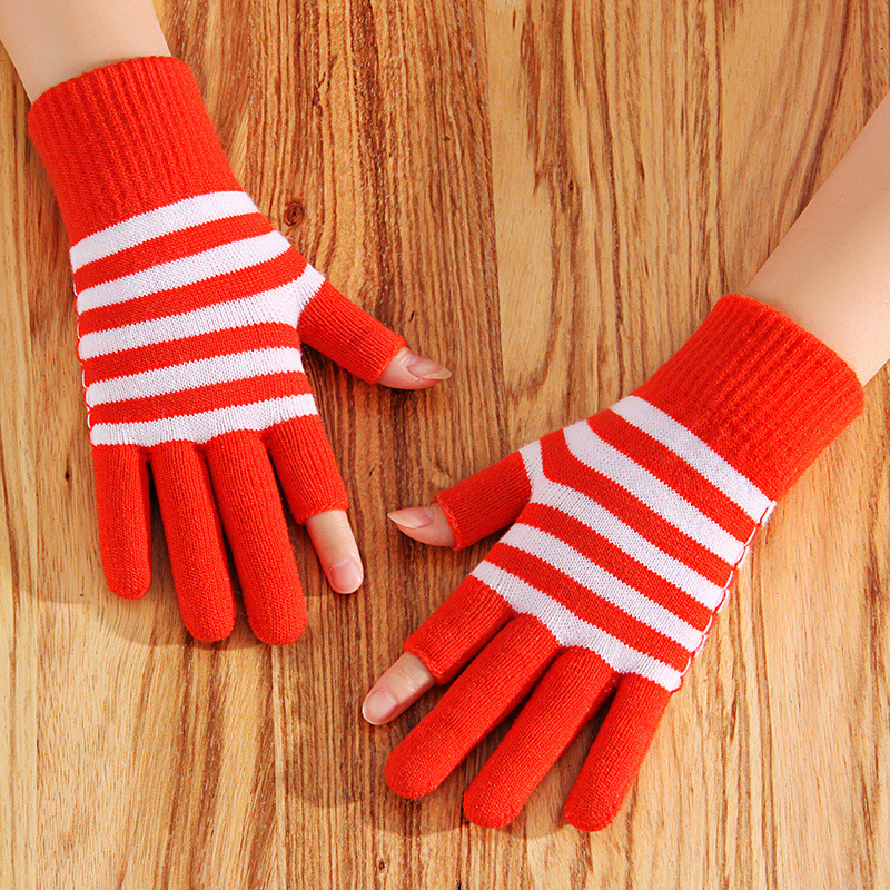 줄무늬 두 손가락 터치 스크린 니트 학생 글쓰기 양털 두꺼운 감기 방지 손가락 한국 스타일 여성의 겨울 따뜻한 장갑