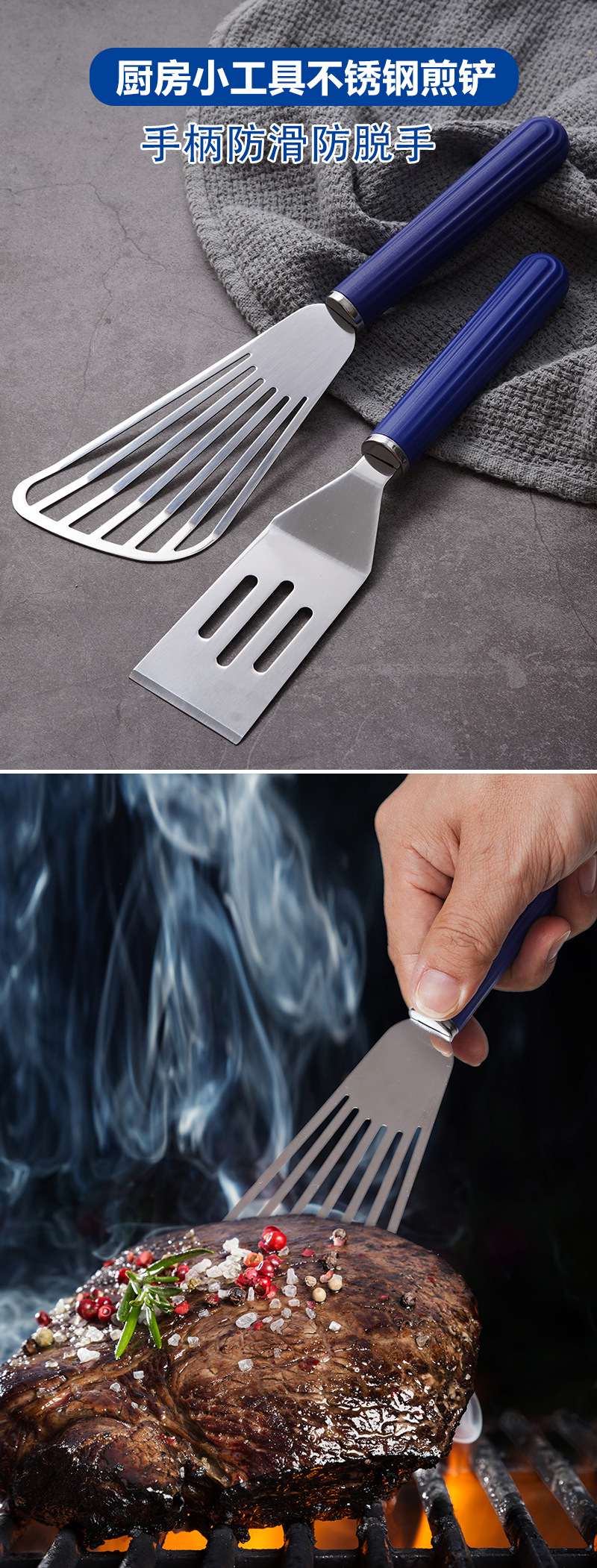 스테인레스 스틸 튀긴 생선 삽 스테이크 주걱 가정용 튀긴 주걱 플라스틱 요리 주걱 요리 주걱 주방 도구 도매