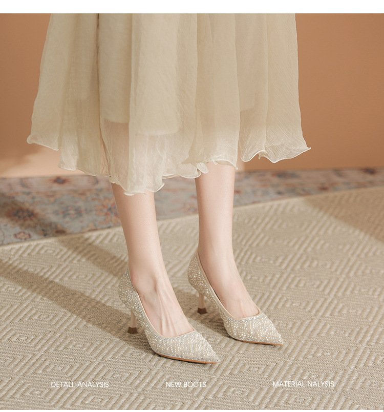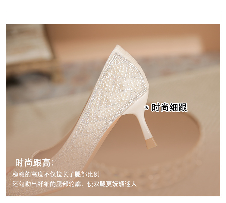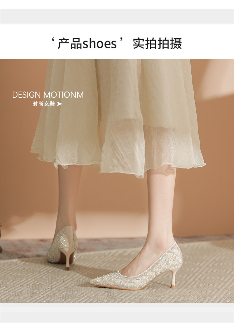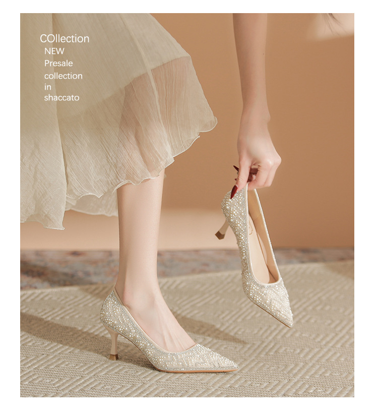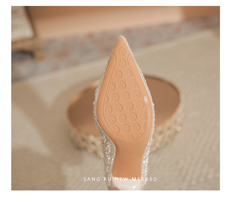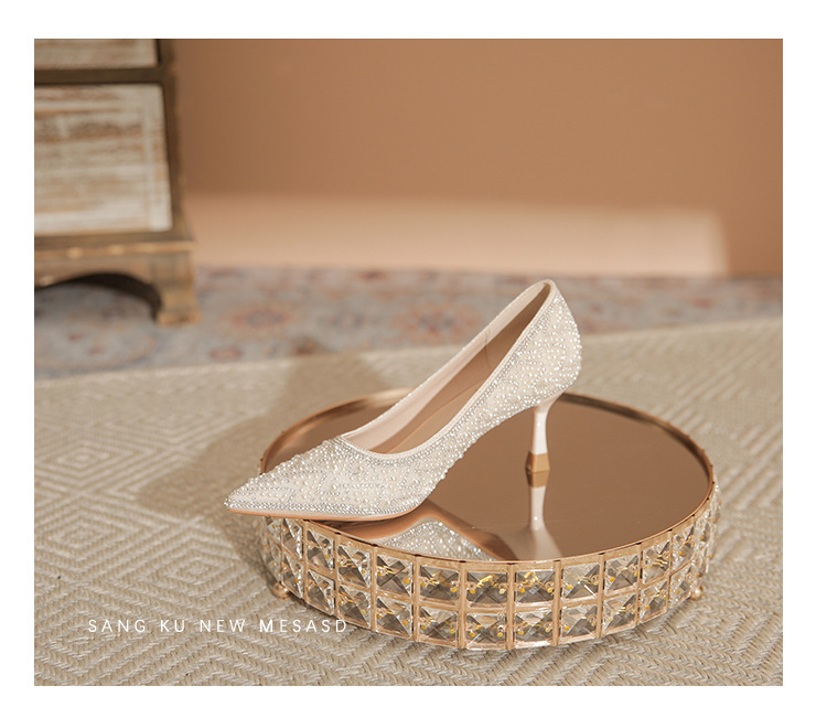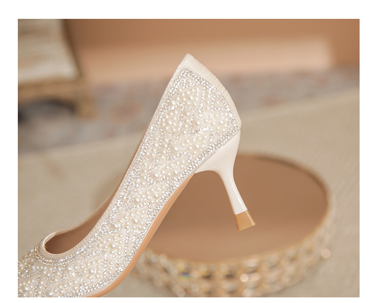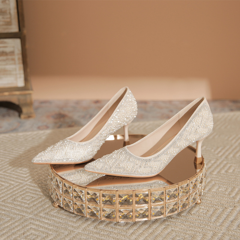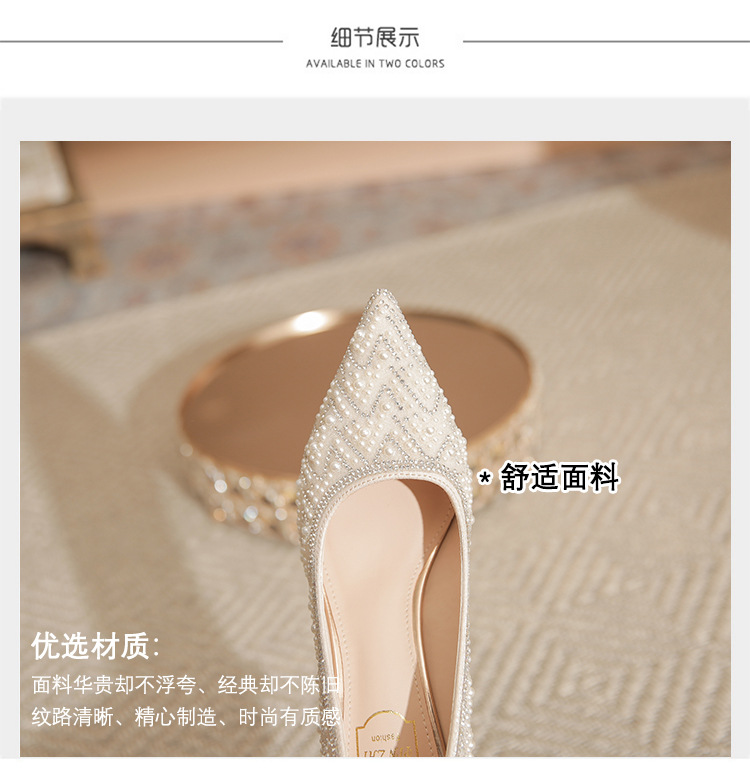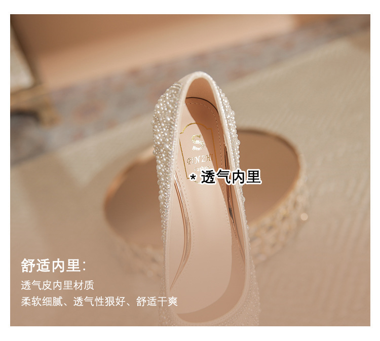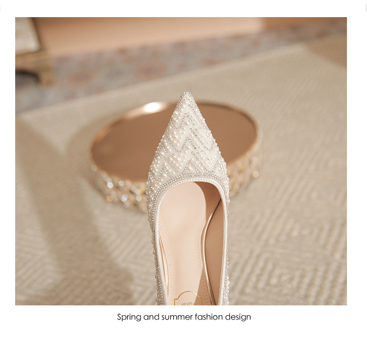 프랑스 진주 라인스톤 하이힐 2024 새로운 메인 웨딩 신부 신발 우아한 뾰족한 스틸레토 힐 지치지 않는 발 싱글 신발스토어 가기