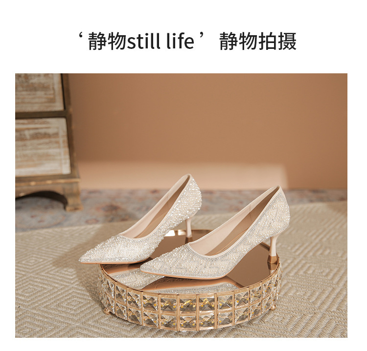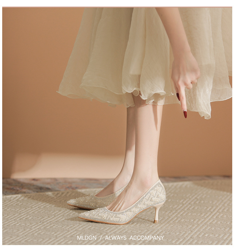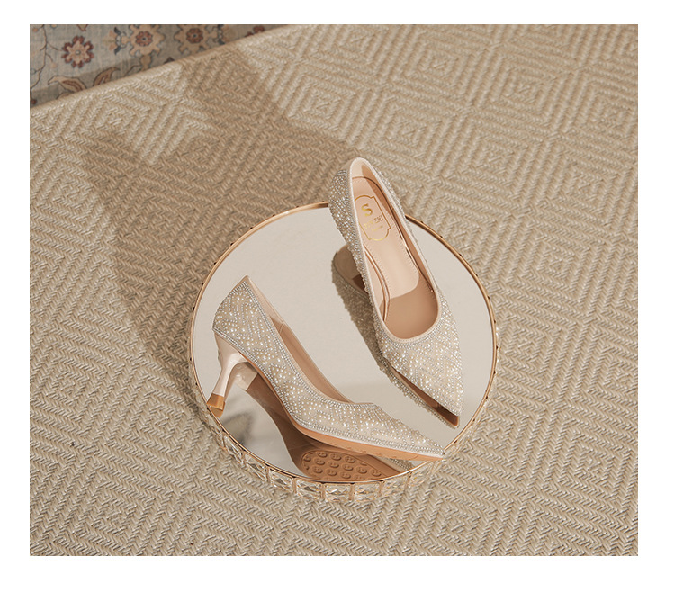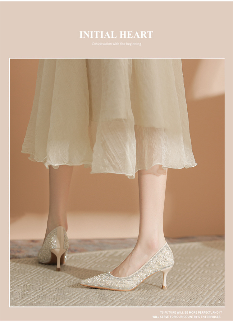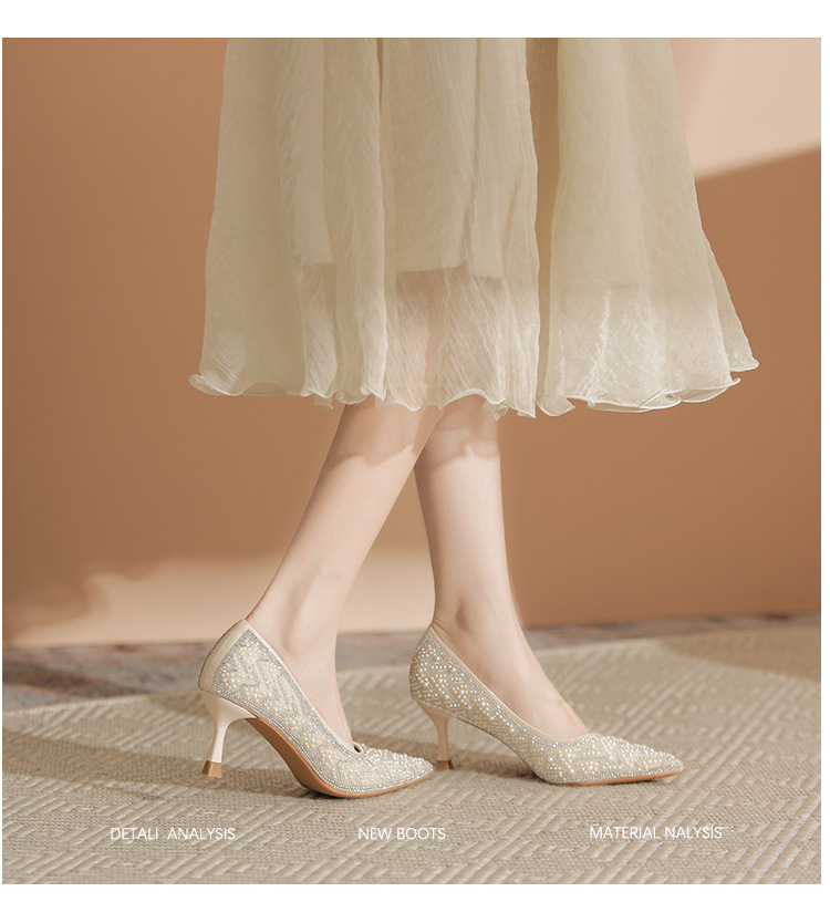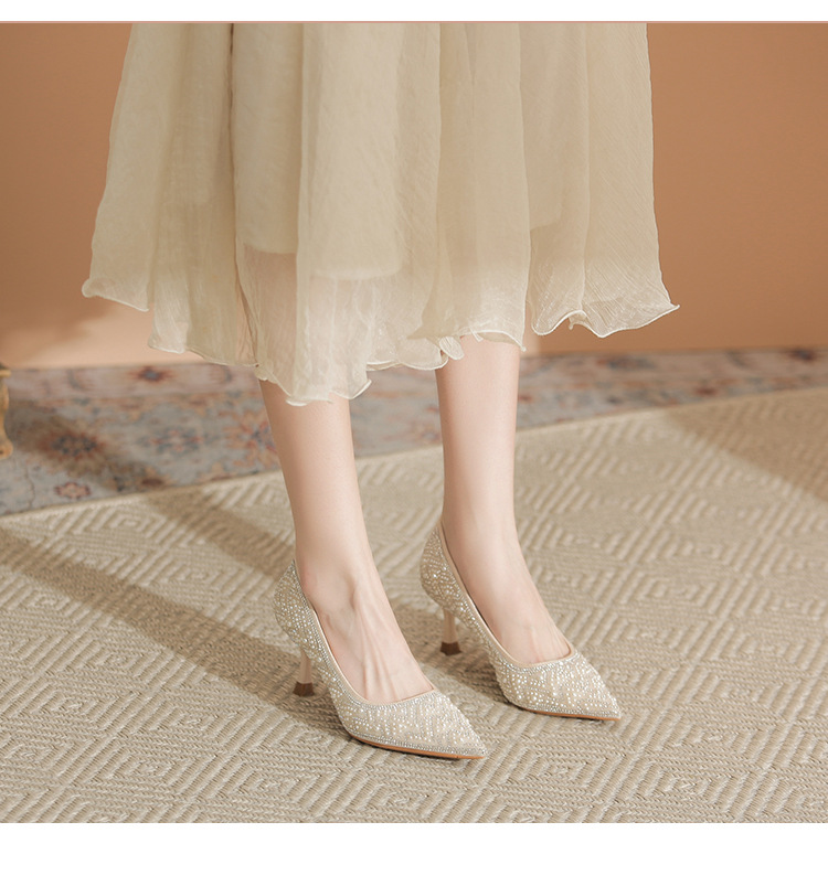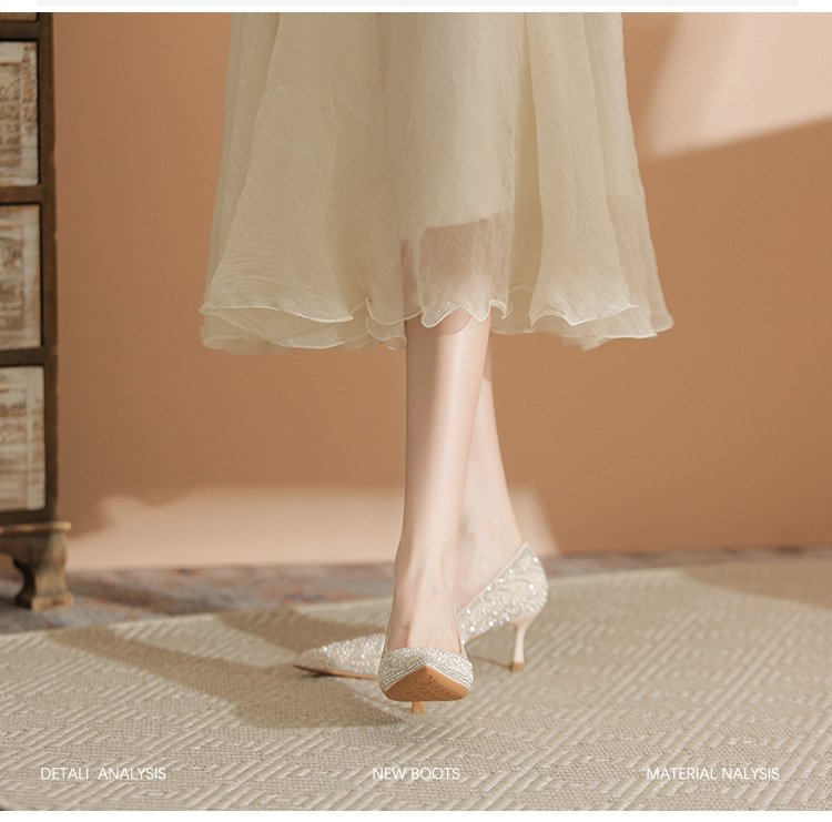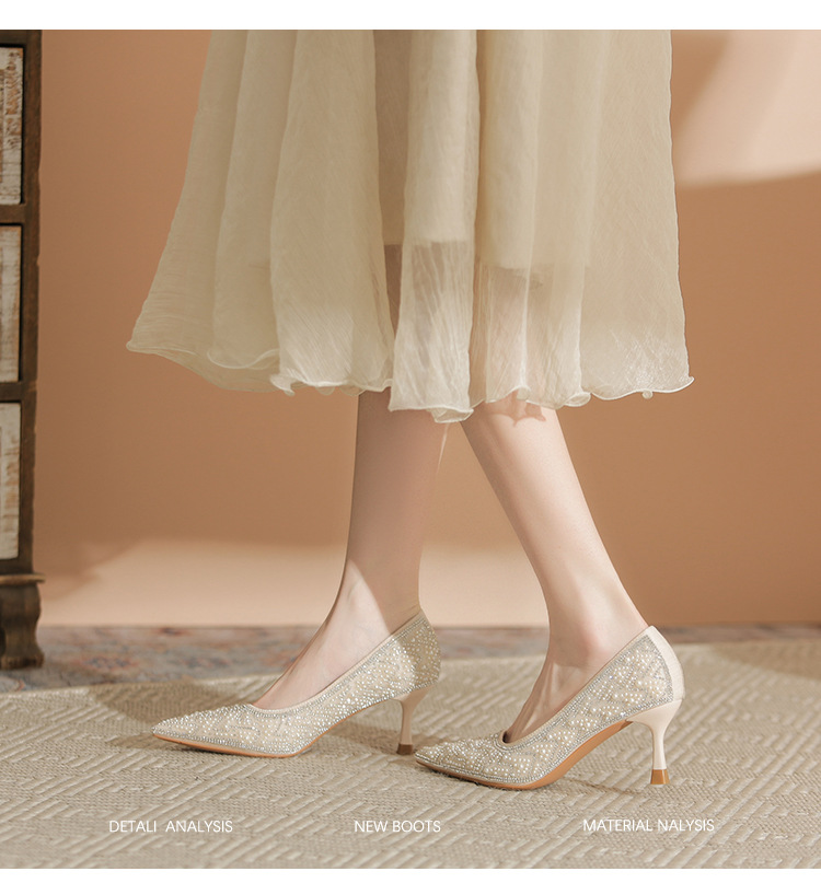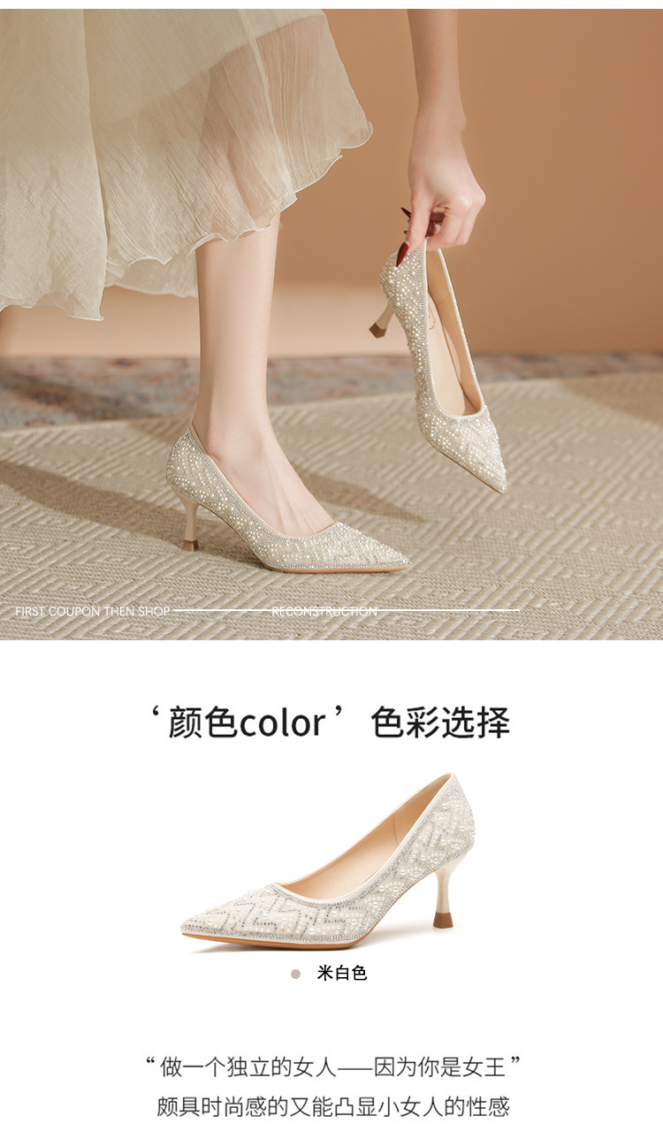 프랑스 진주 라인스톤 하이힐 2024 새로운 메인 웨딩 신부 신발 우아한 뾰족한 스틸레토 힐 지치지 않는 발 싱글 신발스토어 가기