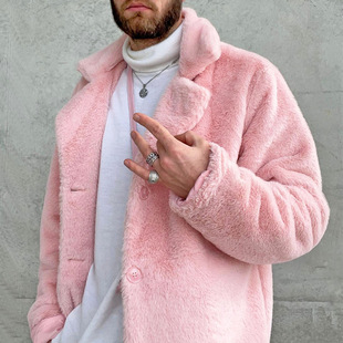 欧美跨境爆款秋冬季男装 宽松翻领纯色开衫夹克男士 毛绒外套大衣