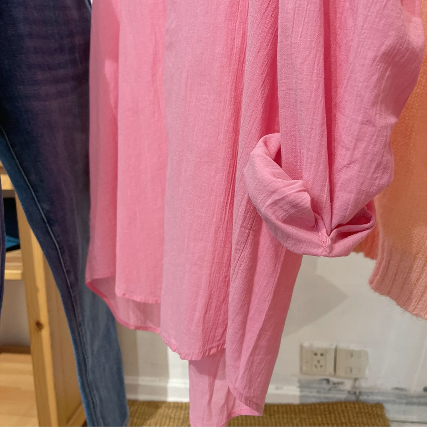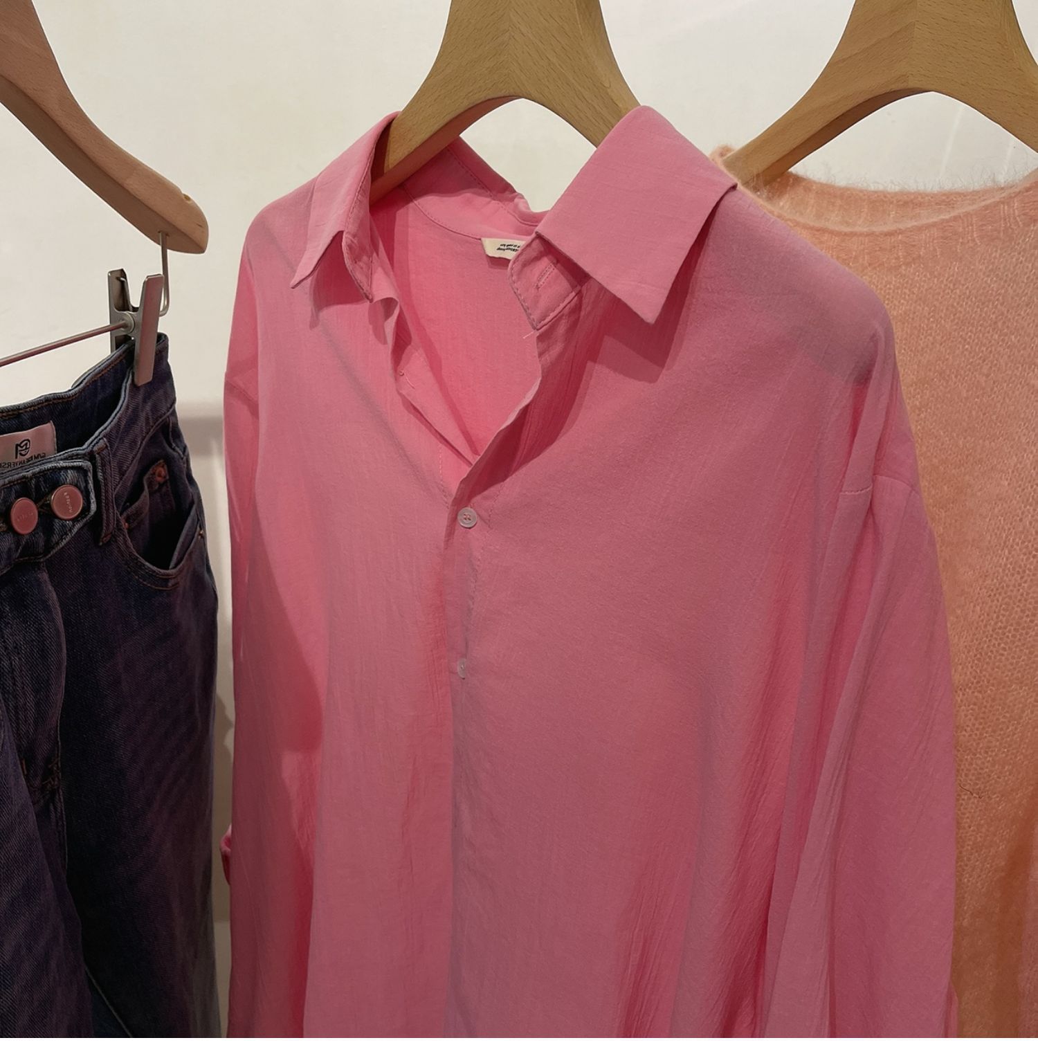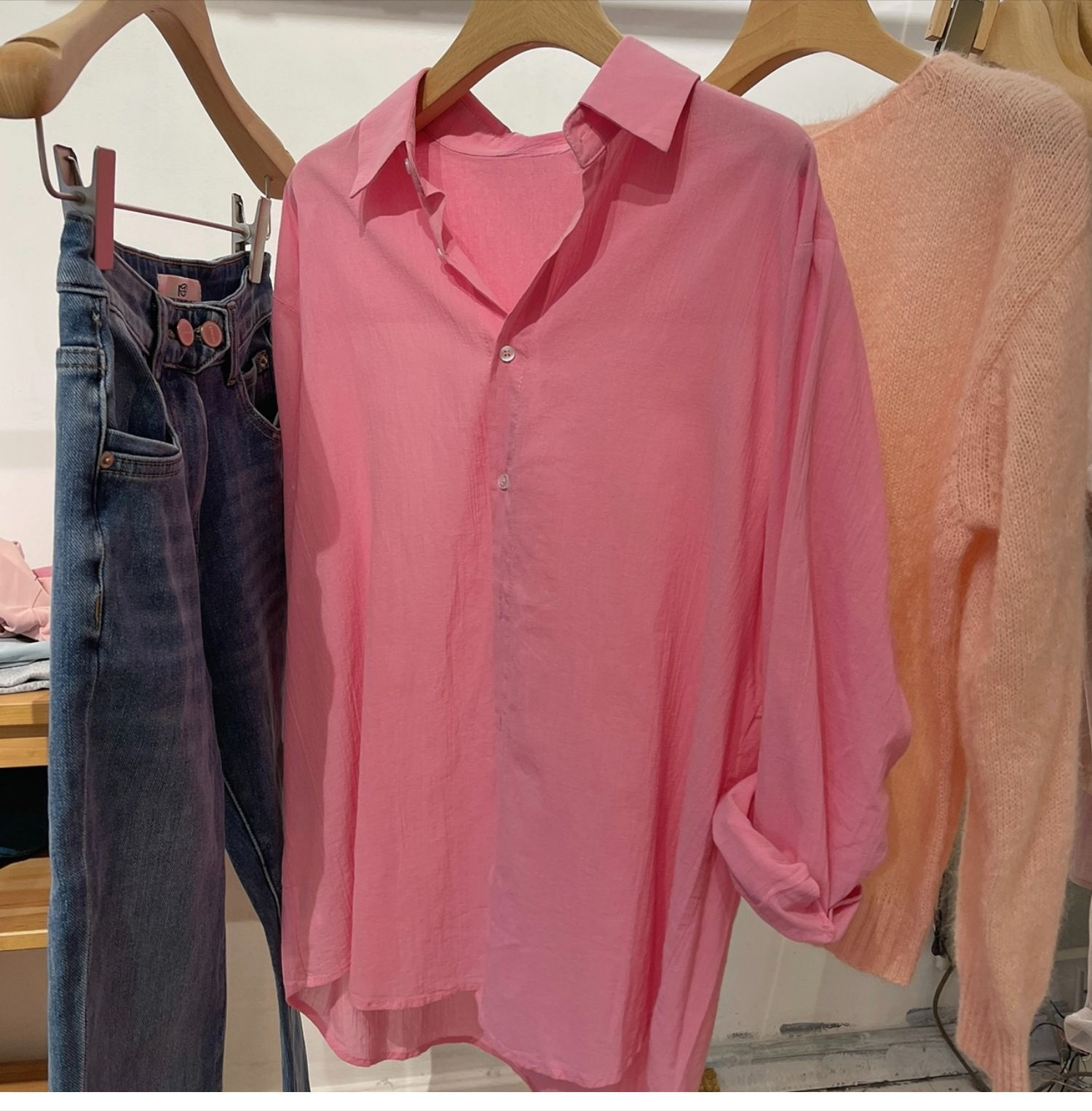 주름 질감 고급 핑크 얇은 캐주얼 셔츠 여성의 2024 여름 새로운 선 스크린 셔츠 달콤한 탑스토어 가기