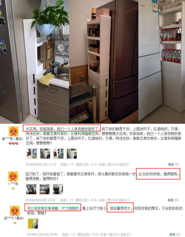 17cm18 갭 저장 캐비닛 플라스틱 서랍 욕실 주방 냉장고 사이드 캐비닛 도어 리어 갭 엣지 신제품스토어 가기