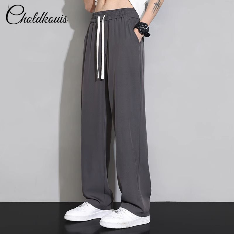 여름 얇은 남자 캐주얼 바지 느슨한 스트레이트 탄성 허리 바지 높은 스트레치 아이스 실크 남자 바지 스포츠 바지스토어 가기