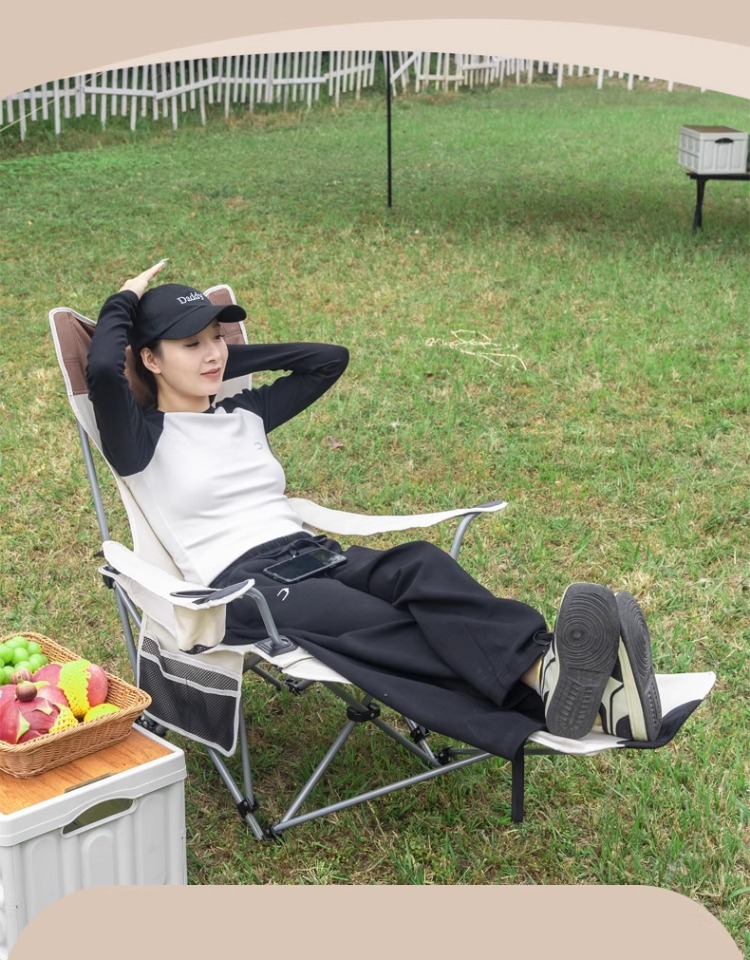 Footrest 의자 접히는 Recliner 야외 휴대용 캠핑 점심 휴식 해변 경량 이중 사용 조정 가능한 안감 의자