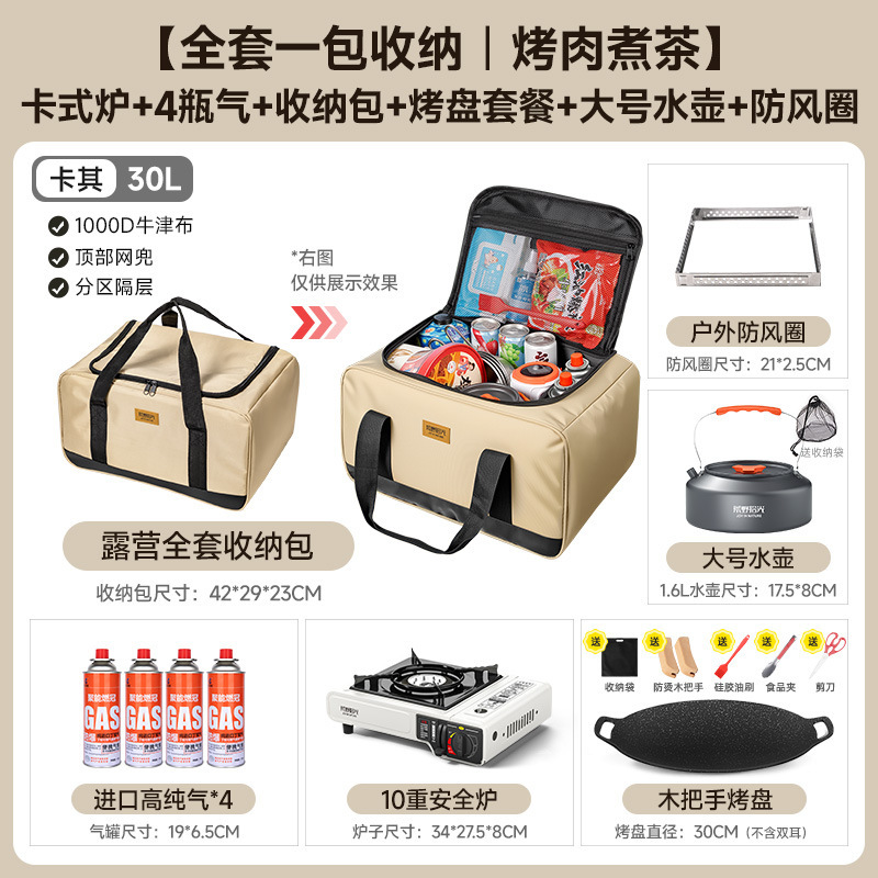• 【풀세트 수납형 | 캠핑 취사 도구 풀세트】 논스틱 팬/구이팬/구이 도구 + 취사 도구 풀세트 포함