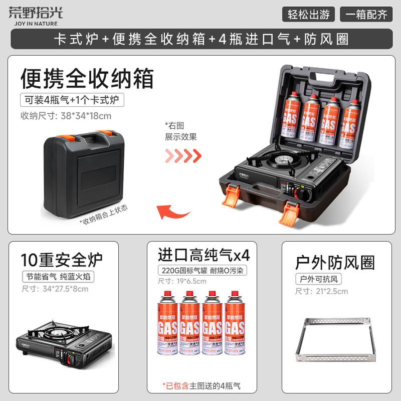 • 블랙 카세트 용광로 가스 업그레이드 저장 상자 방풍 링 4 병