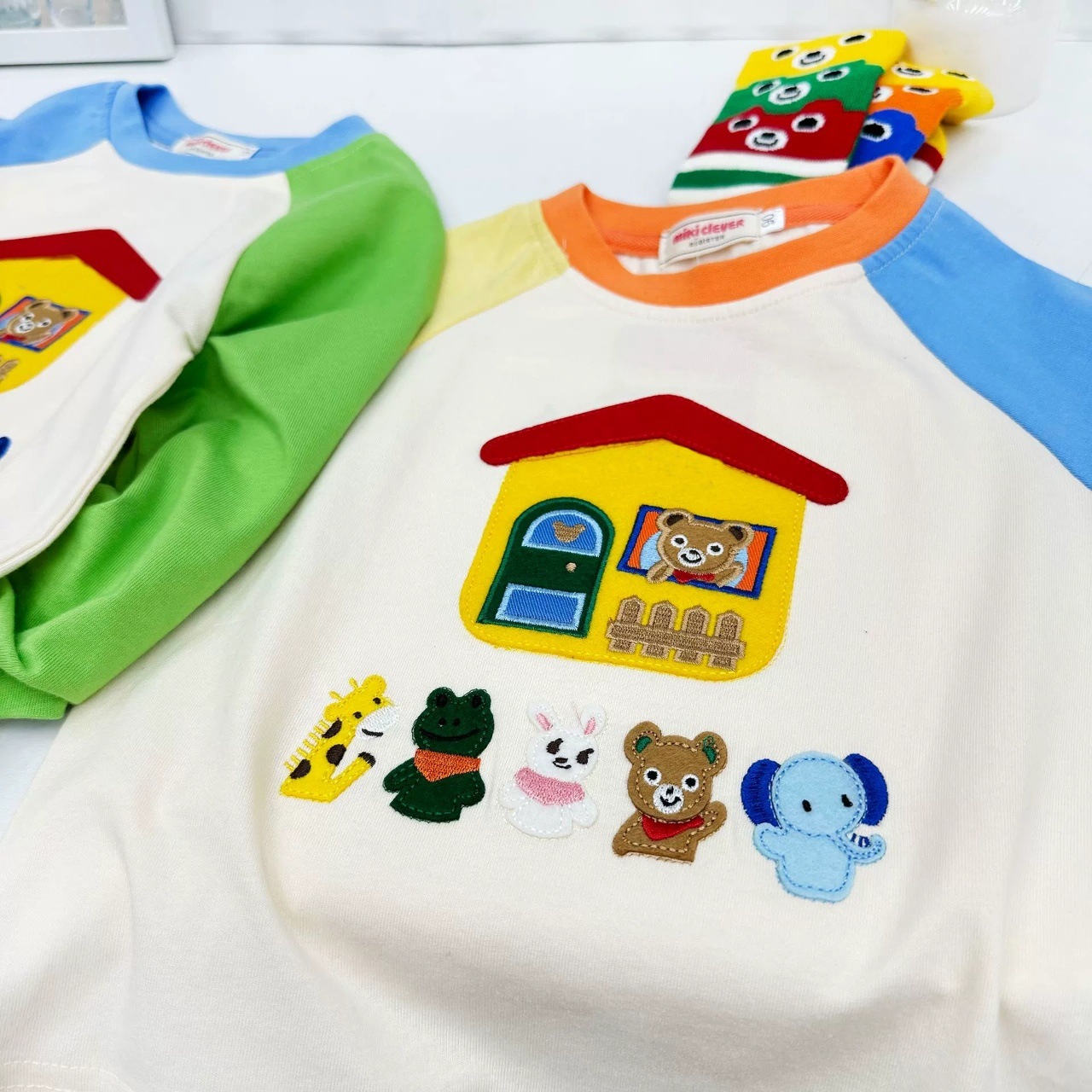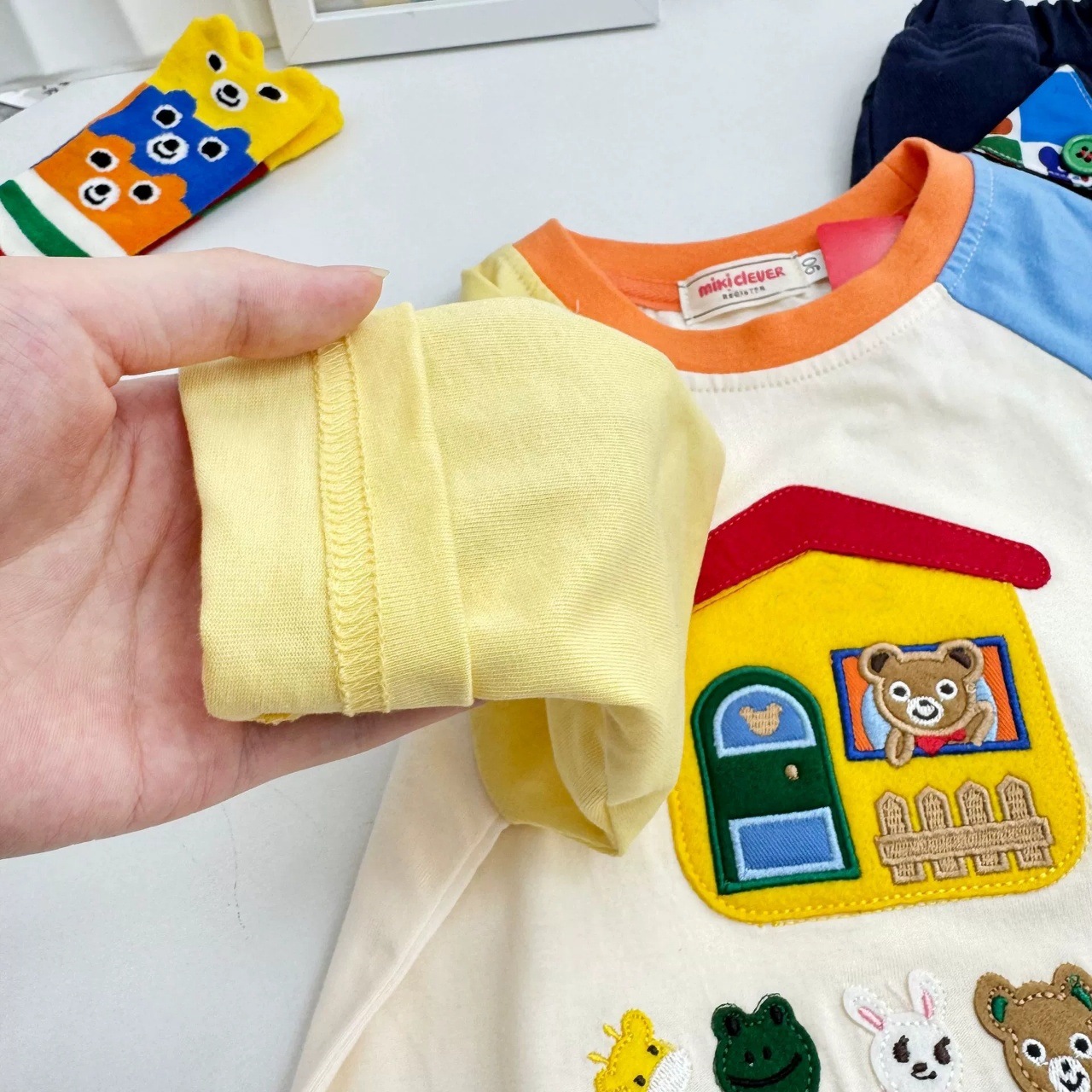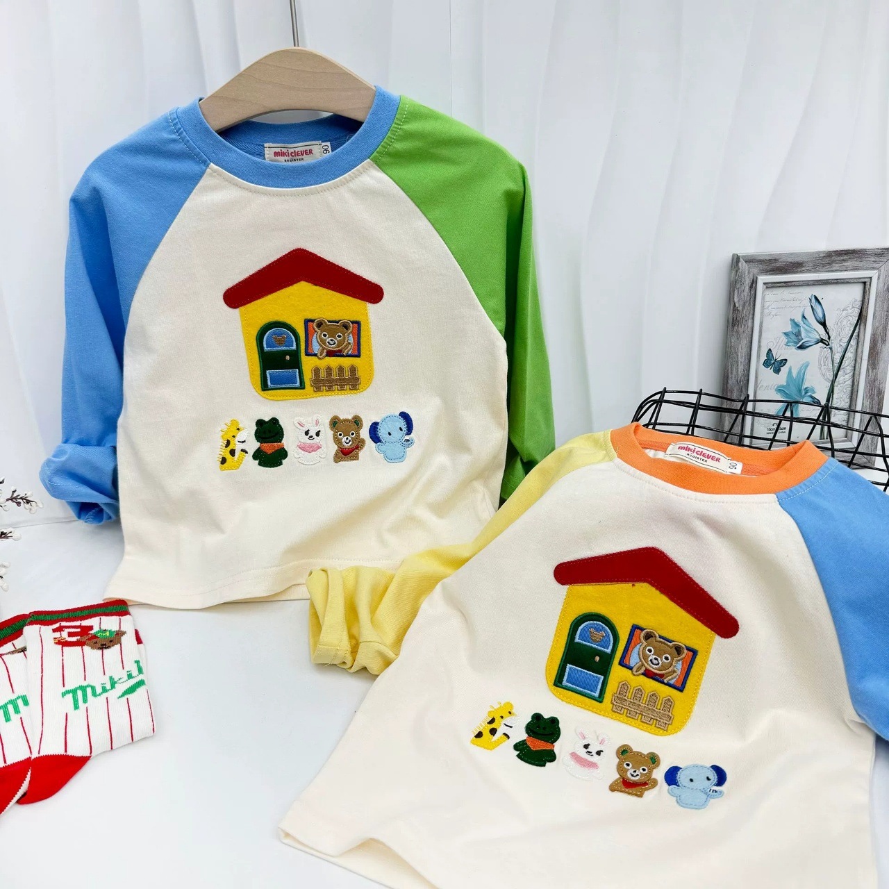대외 무역 일본 어린이 티셔츠 24 가을 새로운 라글란 소매 티셔츠 소년 소녀 만화 작은 곰 토끼 5070스토어 가기