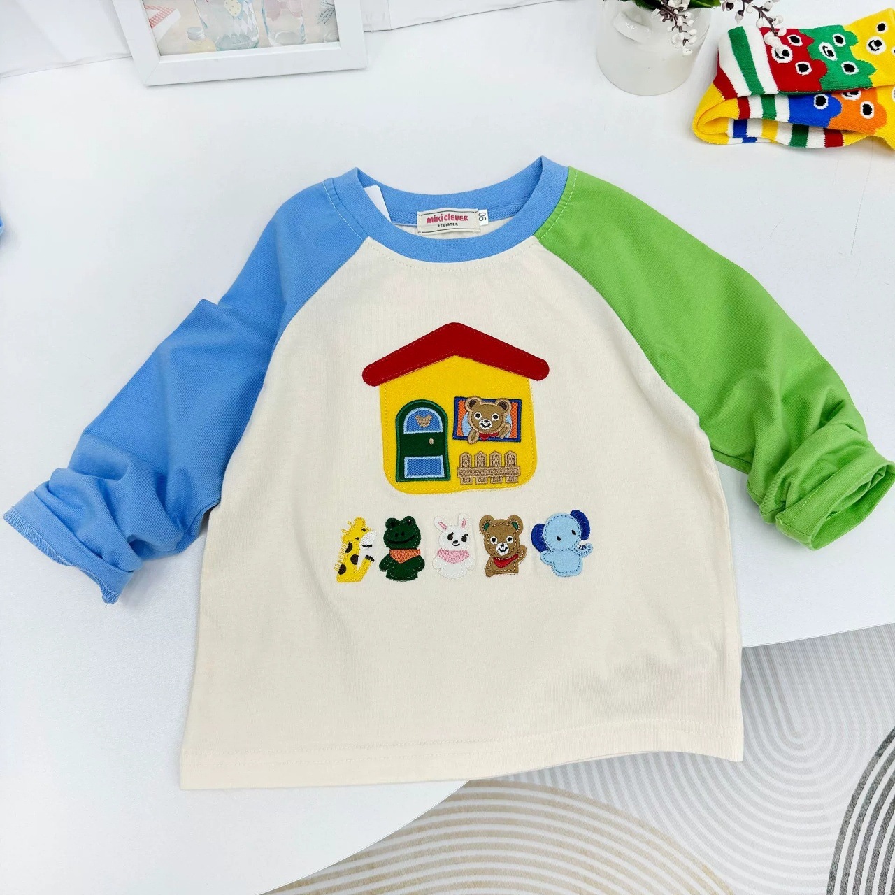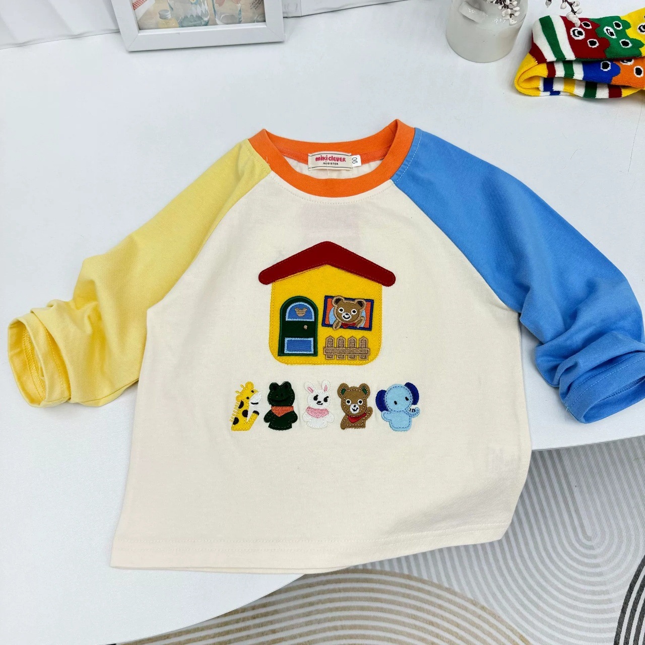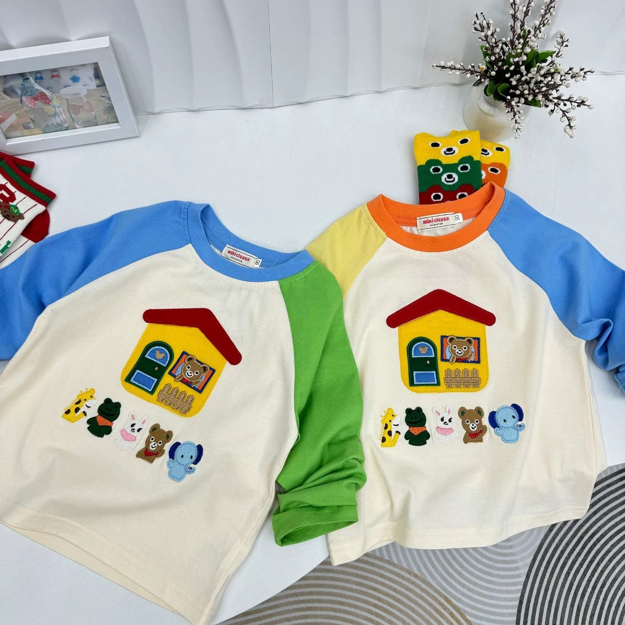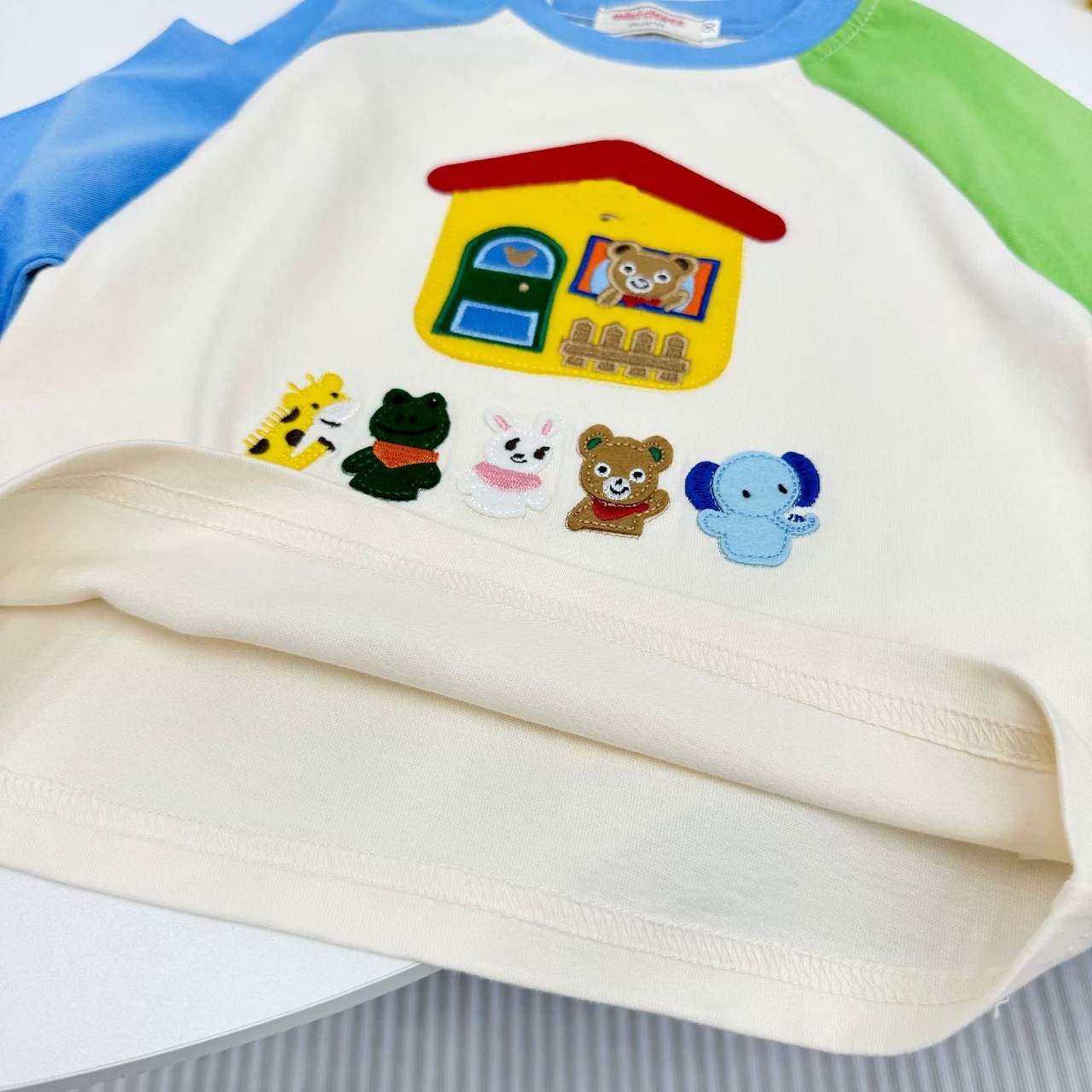 대외 무역 일본 어린이 티셔츠 24 가을 새로운 라글란 소매 티셔츠 소년 소녀 만화 작은 곰 토끼 5070스토어 가기