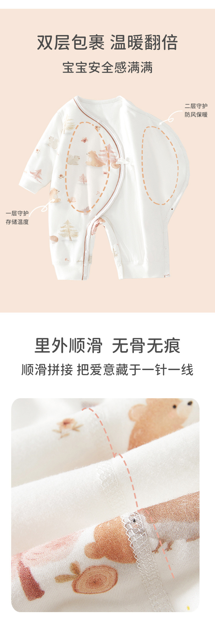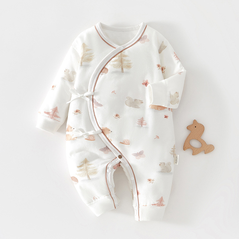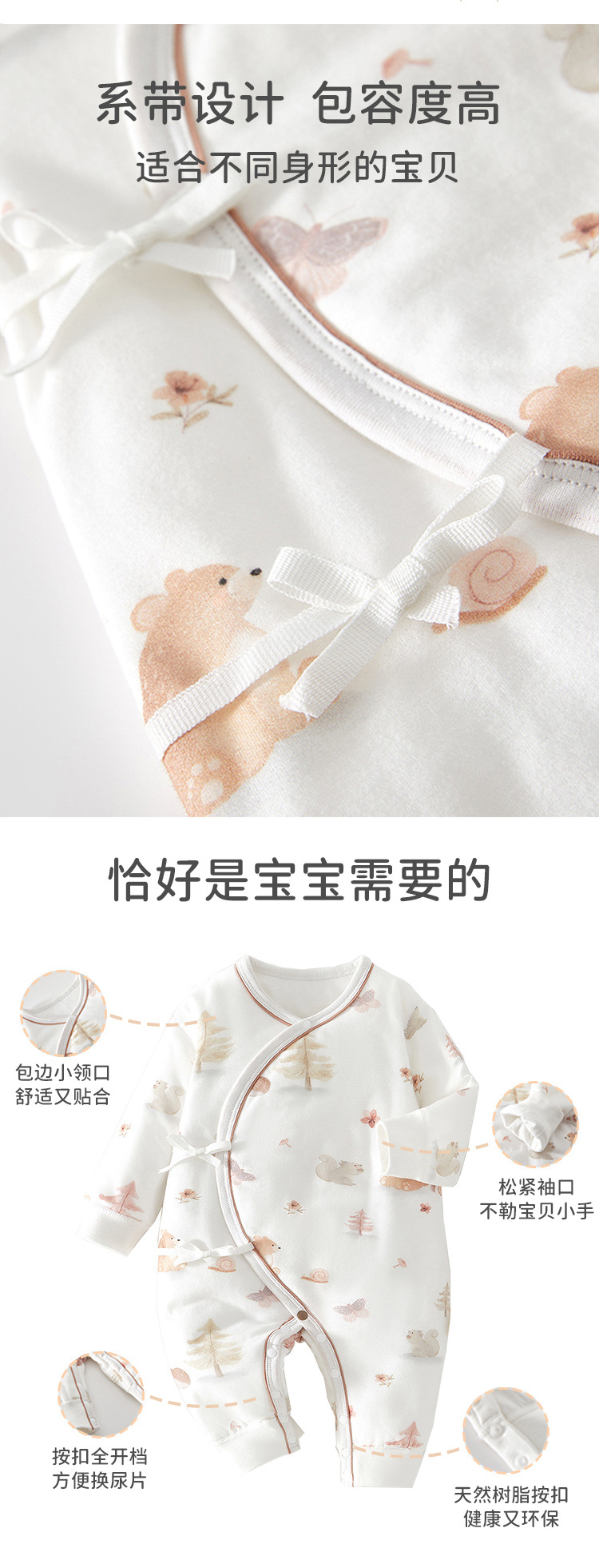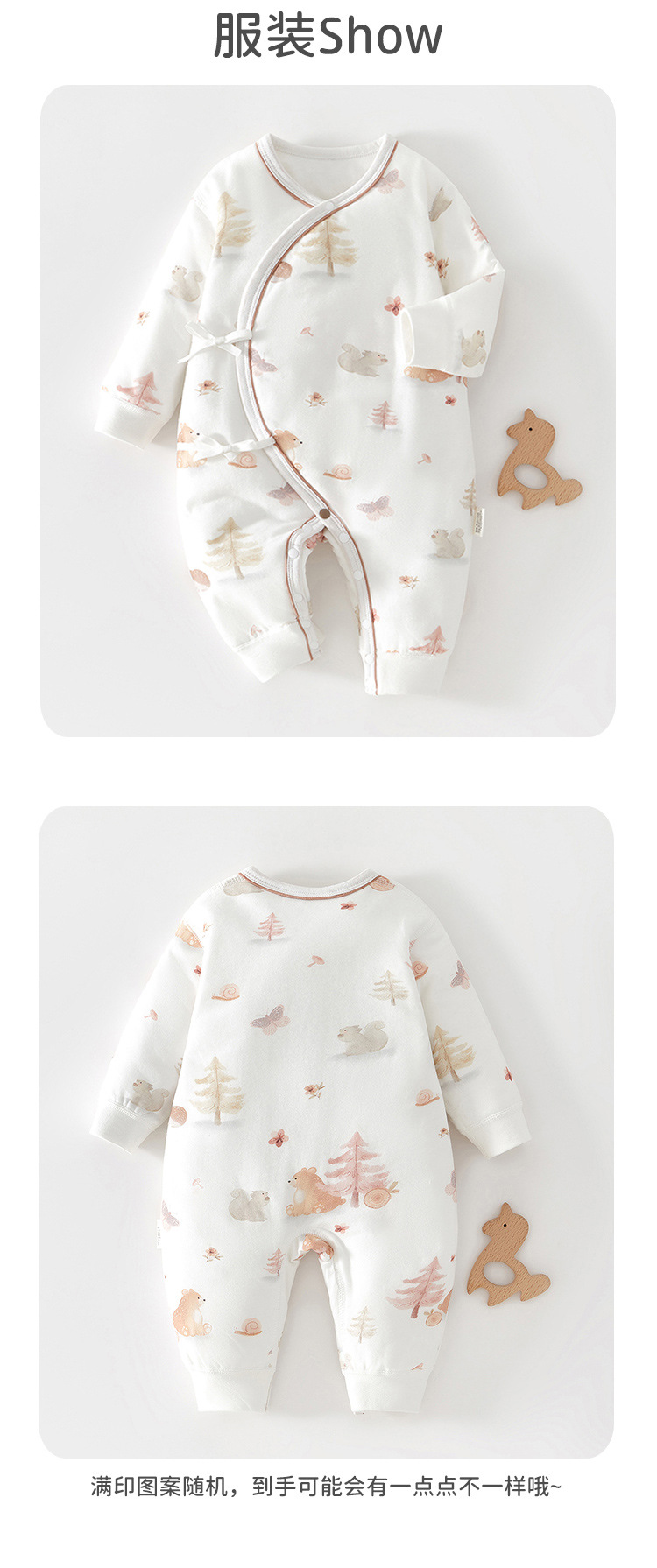 갓 태어난 아기 점프 수트 따뜻한 면화 봄과 가을 신생아 옷 0-3 개월 순면 뼈없는 나비 옷