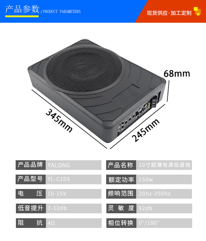 알루미늄 합금 10 인치 자동차 서브 우퍼 자동차 오디오 600w 고출력 자동차 시트 스피커 초박형 스피커스토어 가기