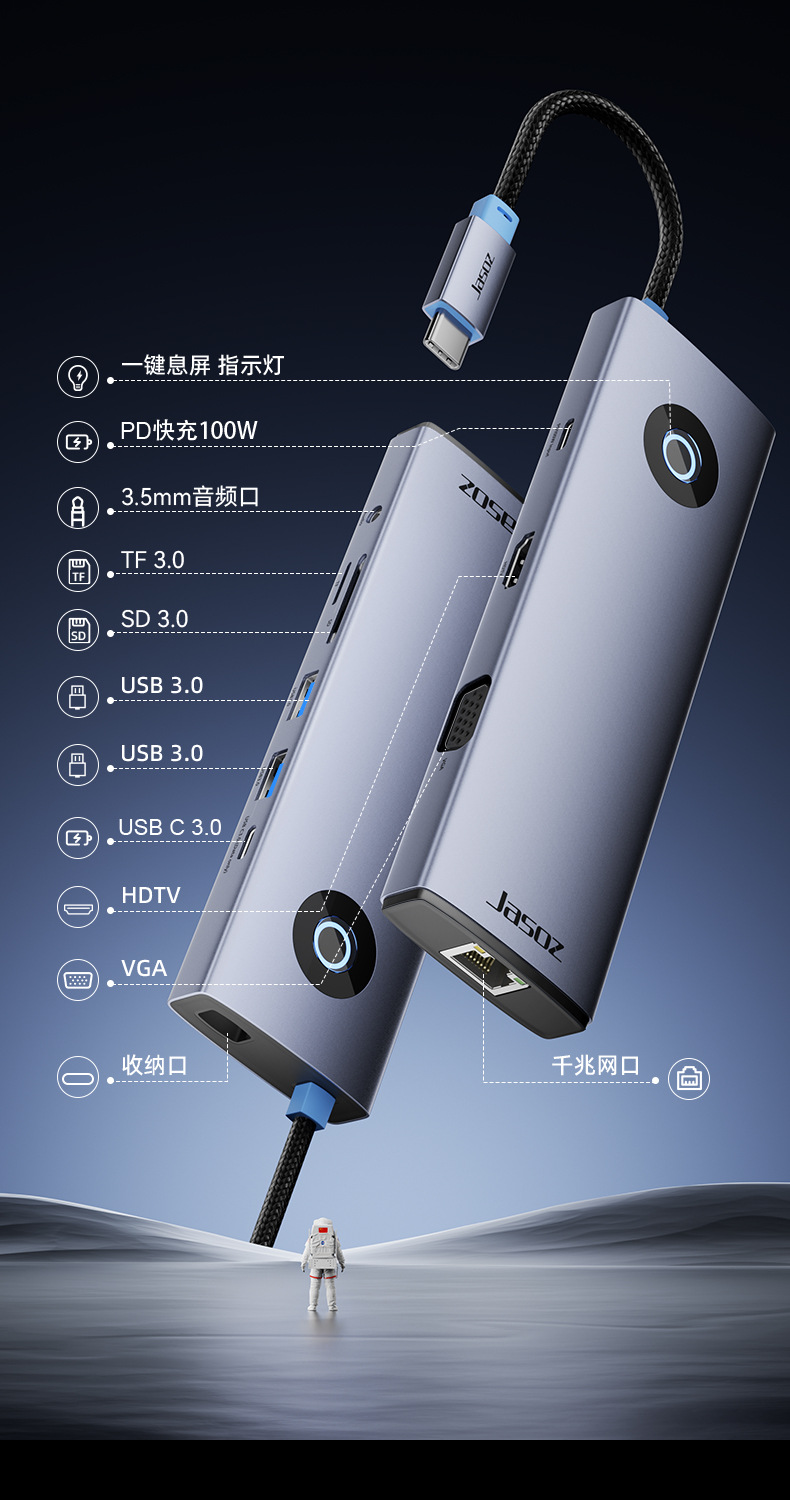 네트워크 포트가 있는 type-c 확장 도크 노트북 태블릿 전화 usb-c 확장기 USB 허브 허브스토어 가기
