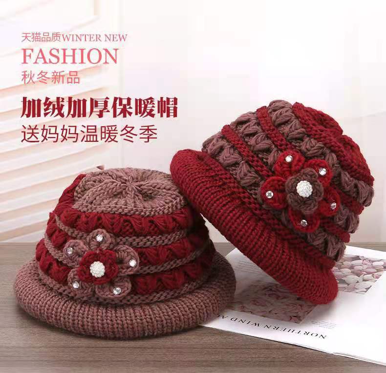 노인들을 위한 겨울 모자, 할머니가 짠 따뜻한 노부인 어부 모자, 중년 및 노년층을 위한 두꺼운 모직 모자 도매