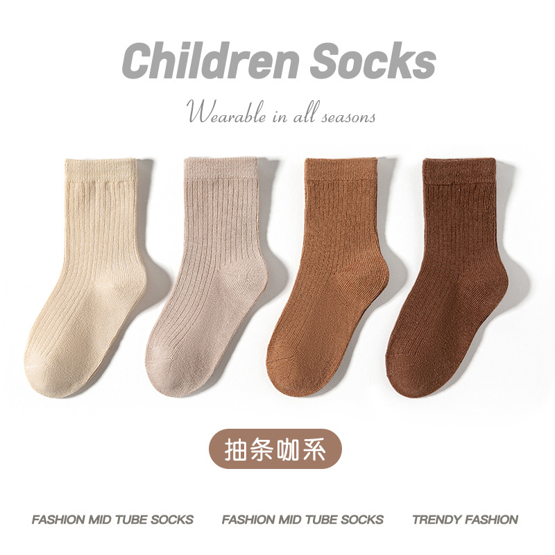 어린이 양말 봄과 가을 소년 소녀 튜브 양말 더블 바늘 다크 브라운 한국 복고풍 아기 면화 양말 가을과 겨울 다용도 양말스토어 가기