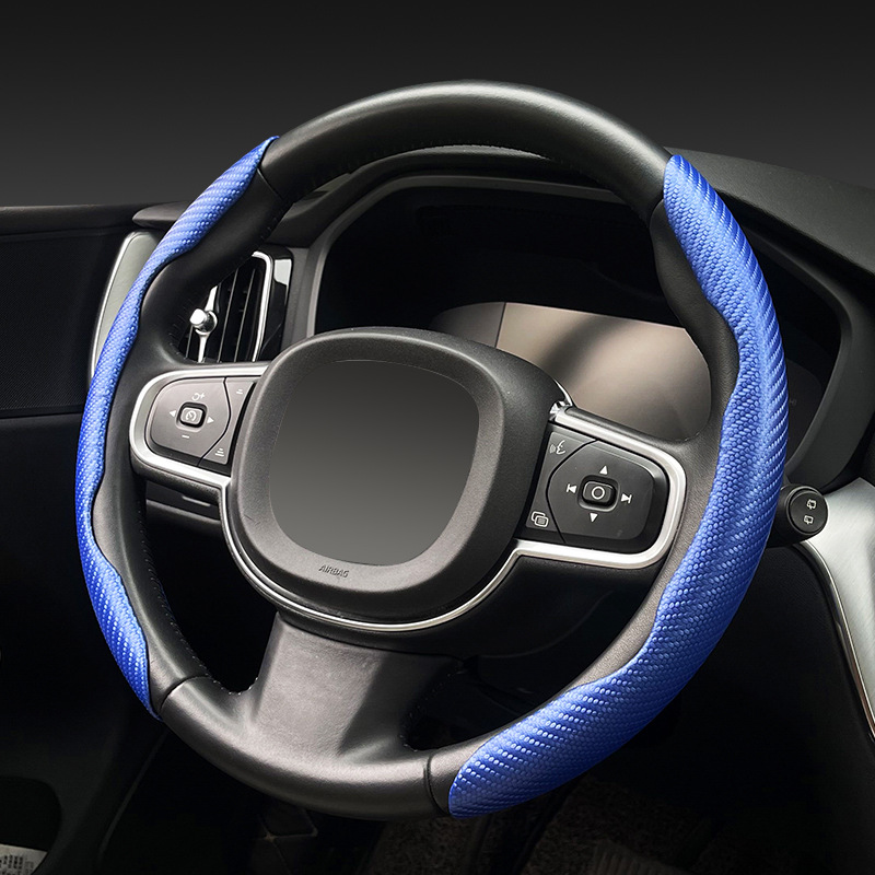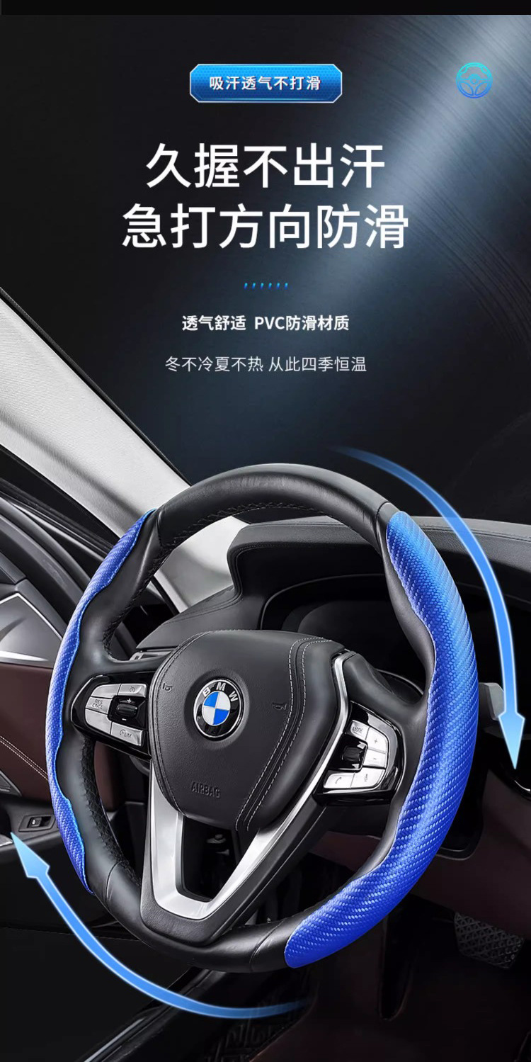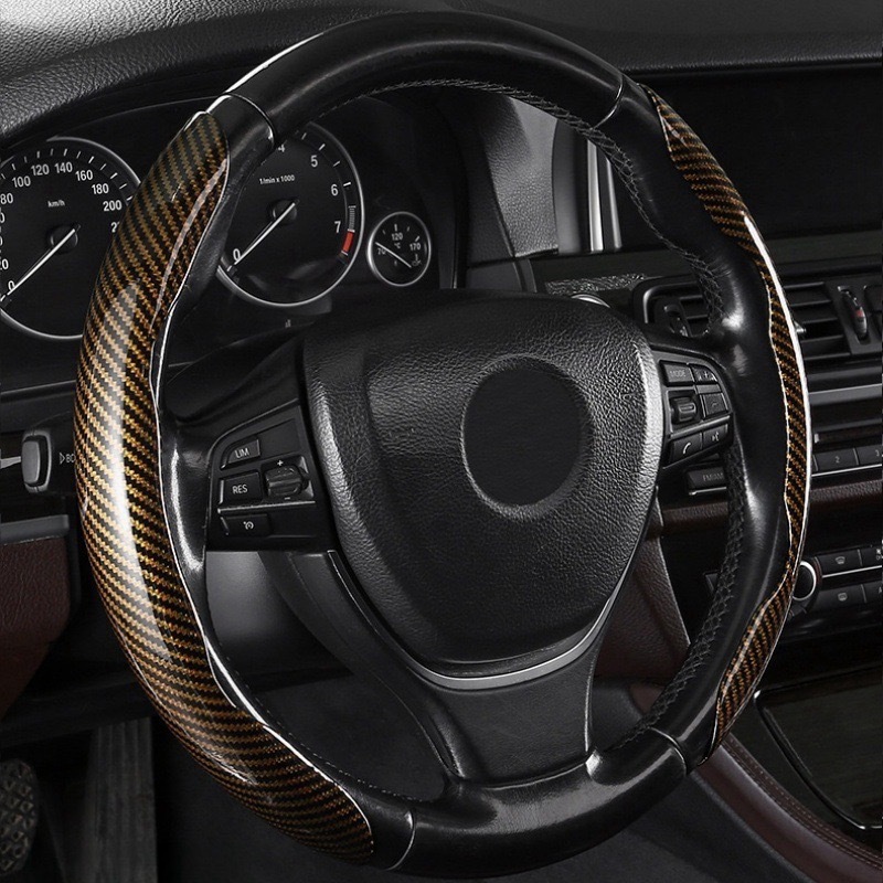 국경 간 자동차 스티어링 휠 커버 탄소 섬유 패턴 땀 흡수성 미끄럼 초박형 자동차 핸들 커버 사계절 유니버설 레이저 하프 세트 카드 커버스토어 가기