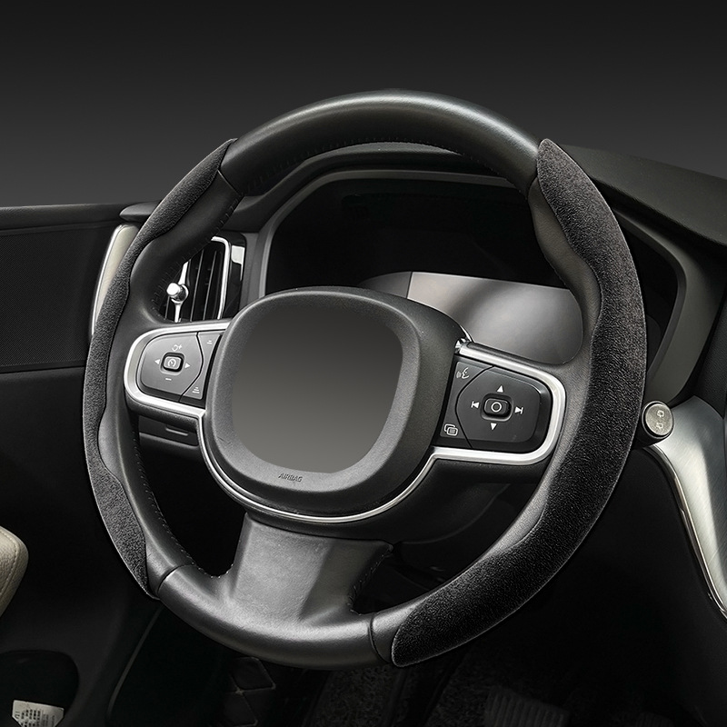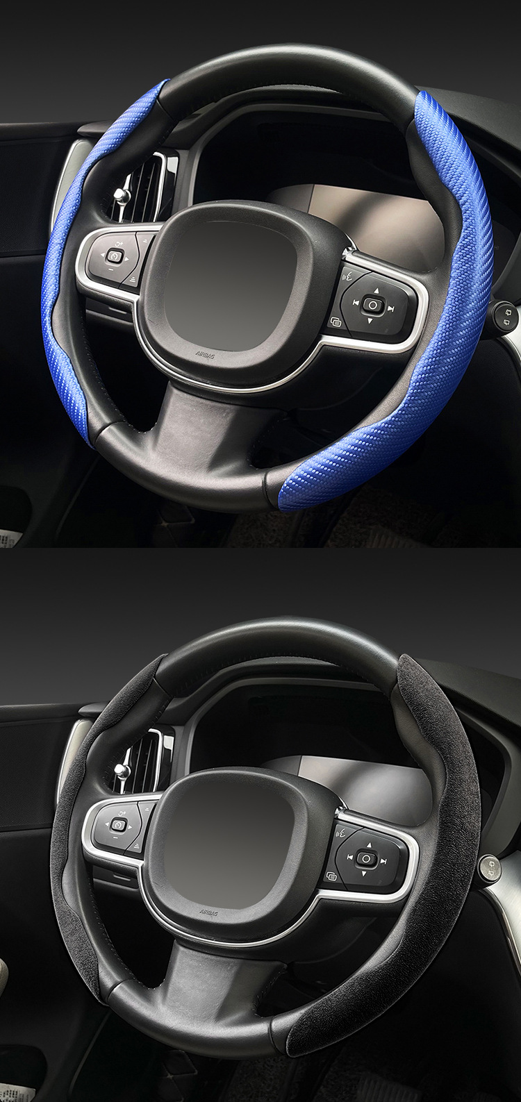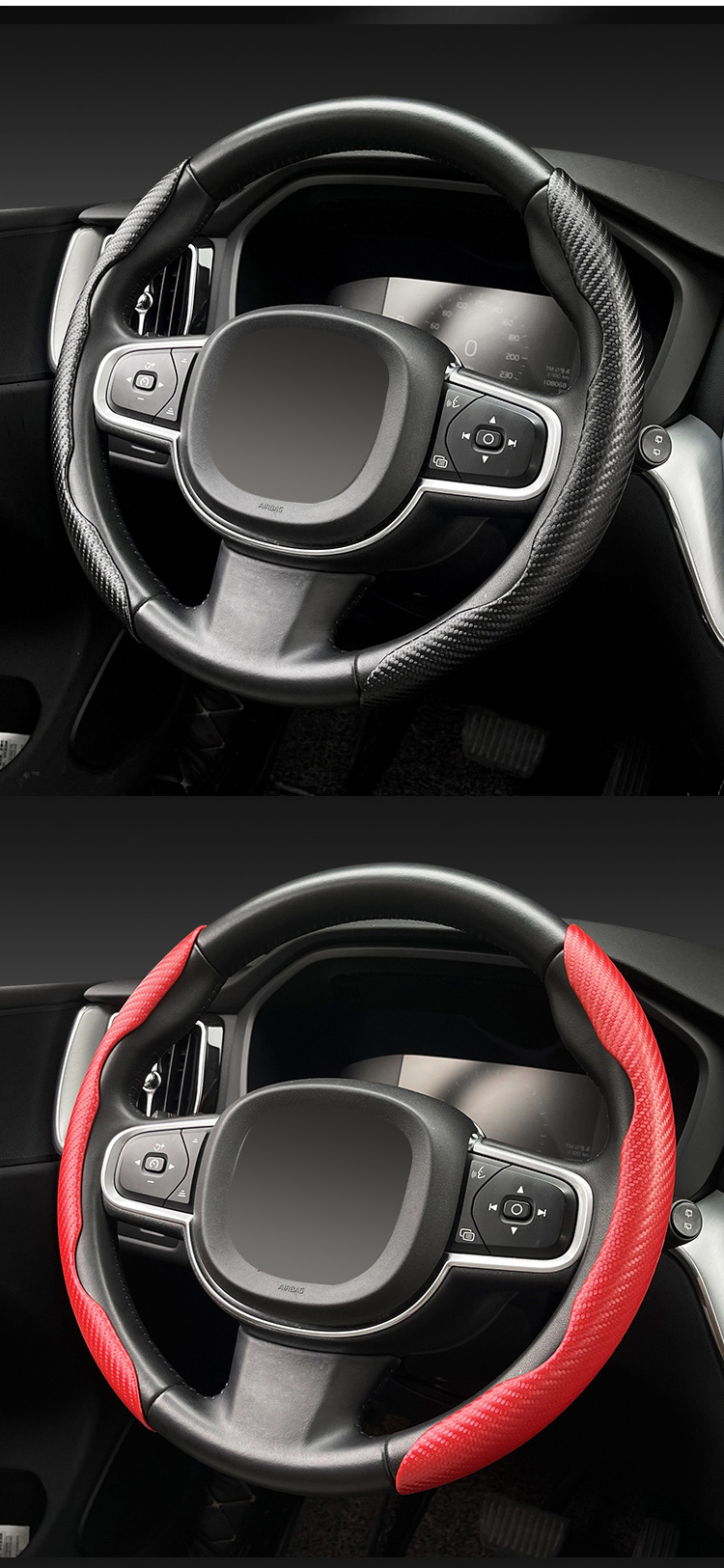 국경 간 자동차 스티어링 휠 커버 탄소 섬유 패턴 땀 흡수성 미끄럼 초박형 자동차 핸들 커버 사계절 유니버설 레이저 하프 세트 카드 커버