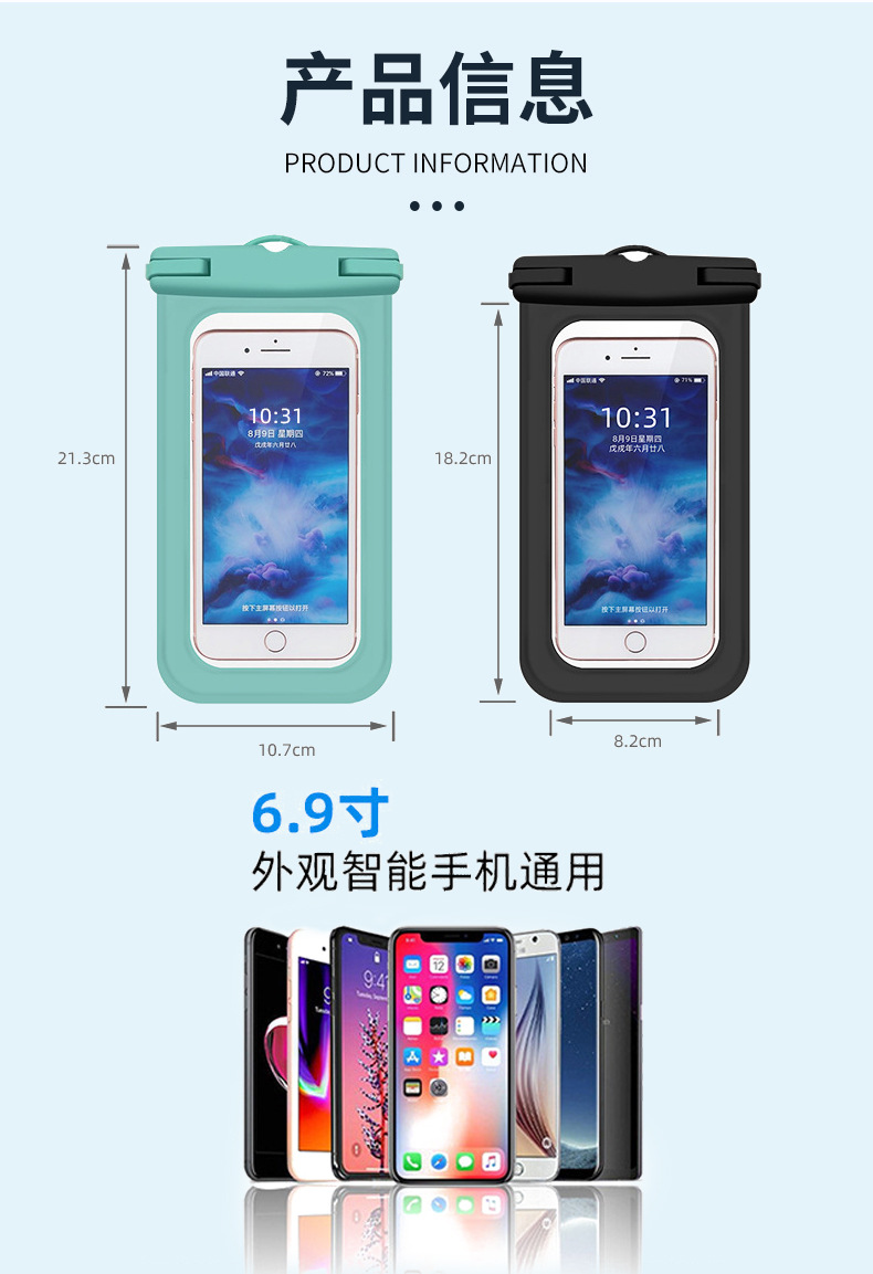 아마존 최고의 판매 pvc 보편적 인 휴대 전화 방수 가방 야외 표류 다이빙 수영 터치 스크린 사진 8 방수