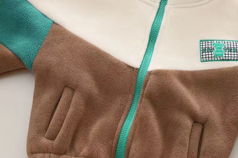 2024 어린이 컬러 블록 스탠드 칼라 지퍼 셔츠 운동복 세트 아동복 소년 가을과 겨울 기모 캐주얼 코트 의류스토어 가기