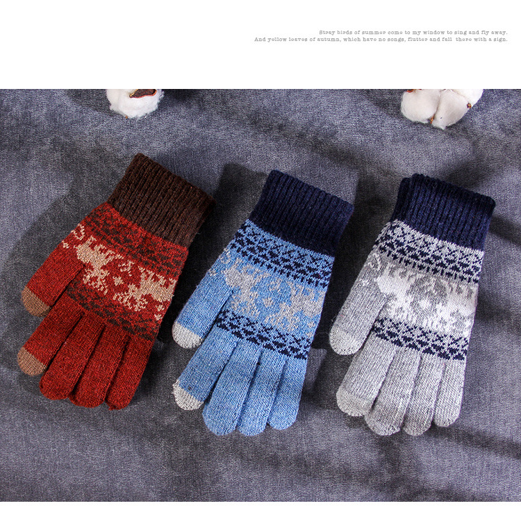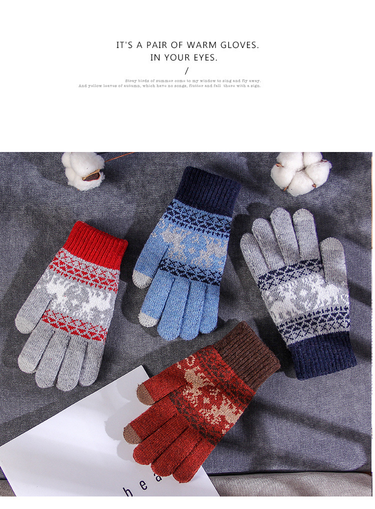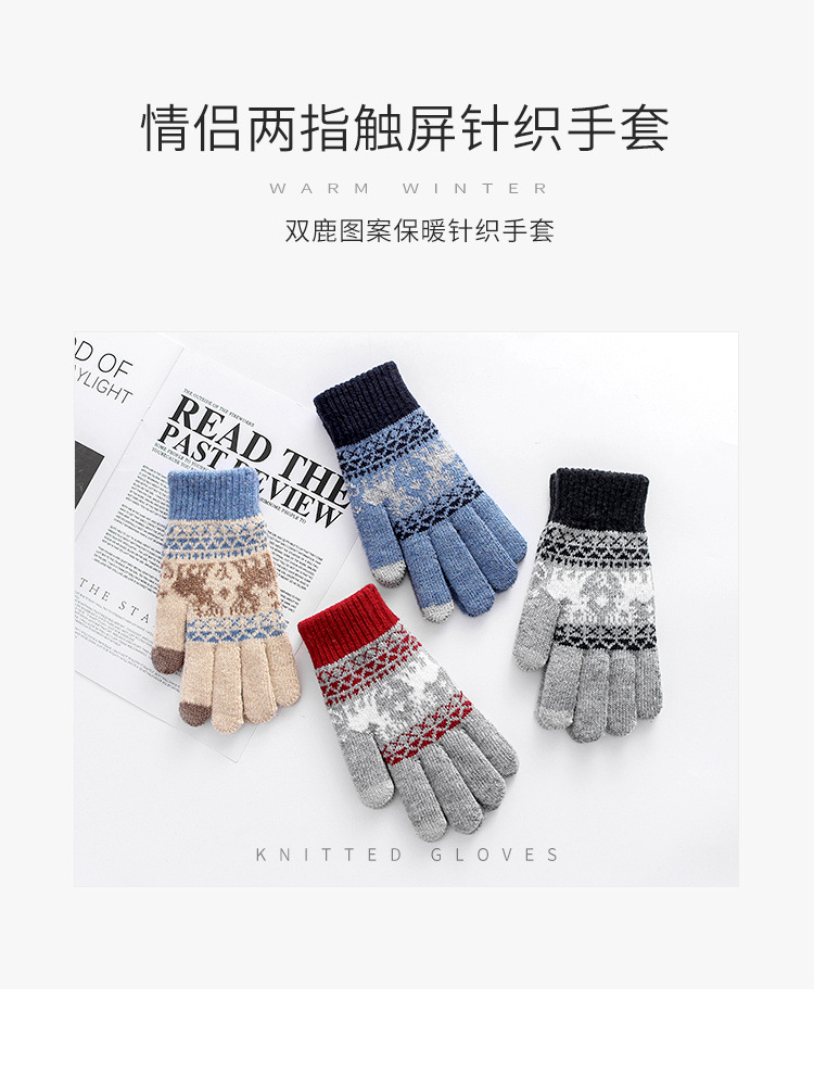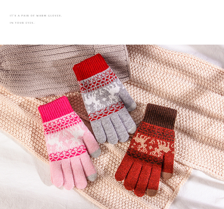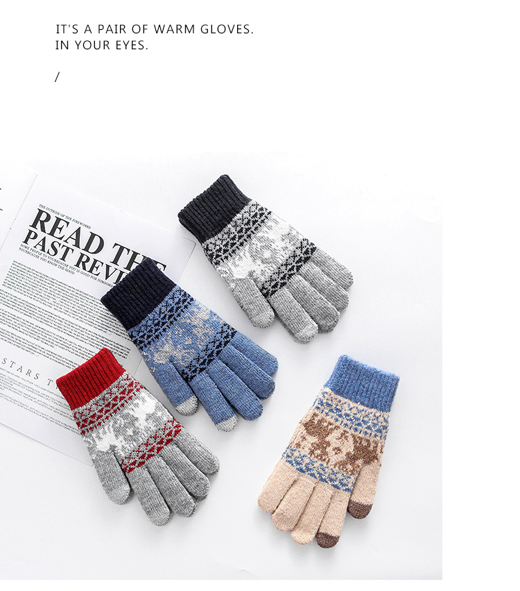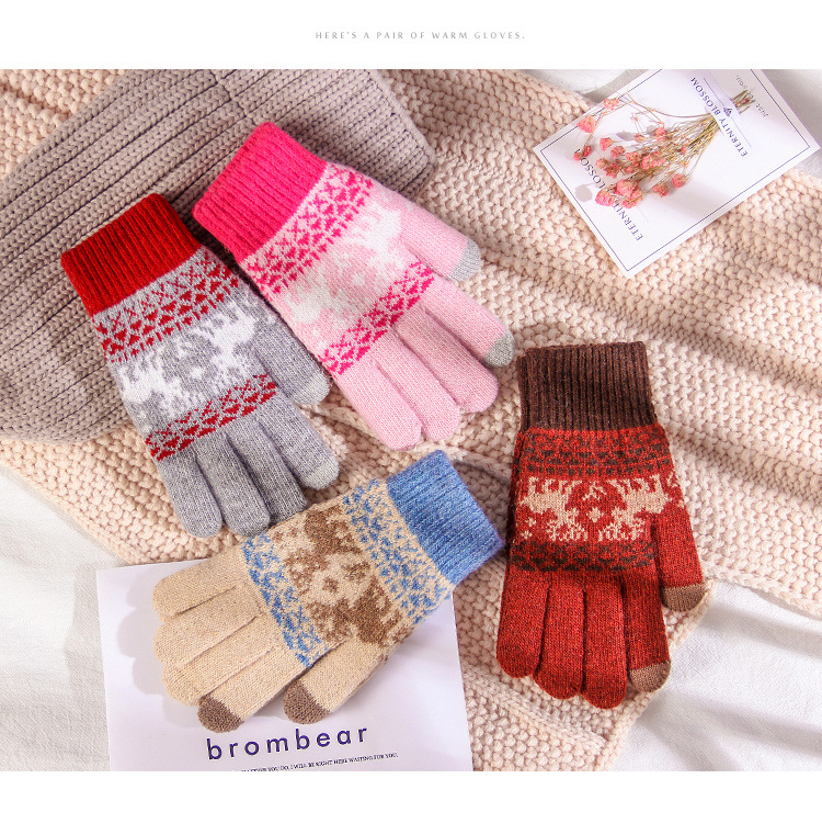 커플 니트 장갑 손가락 터치 스크린 만화 fawn 가을과 겨울 따뜻한 차가운 방수 야외 사이클링 울 장갑