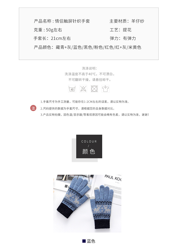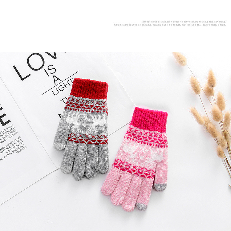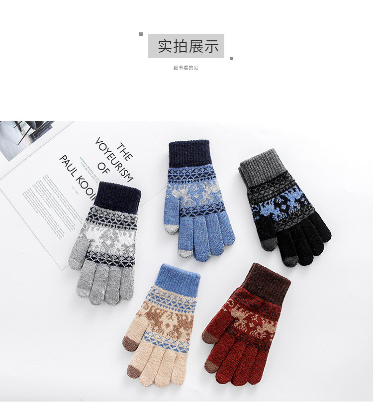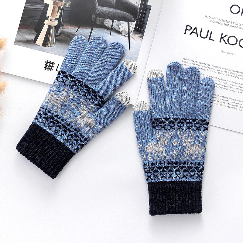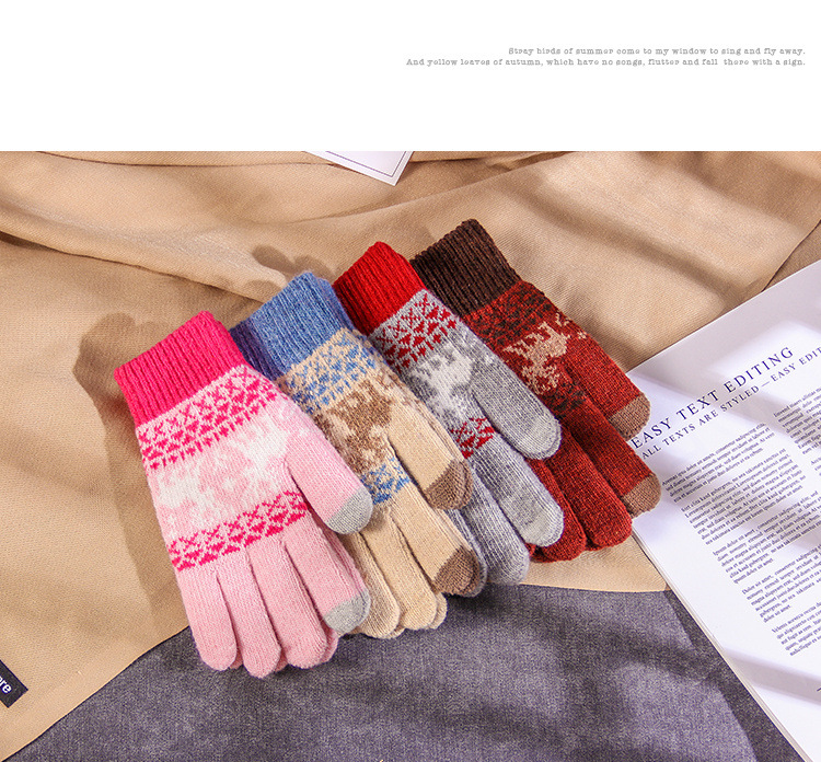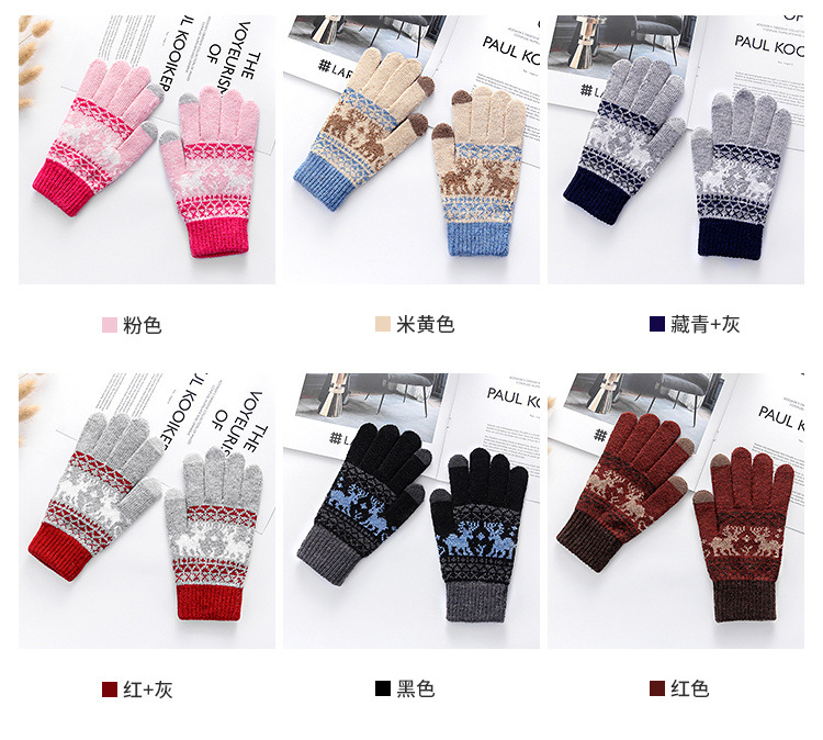 커플 니트 장갑 손가락 터치 스크린 만화 fawn 가을과 겨울 따뜻한 차가운 방수 야외 사이클링 울 장갑