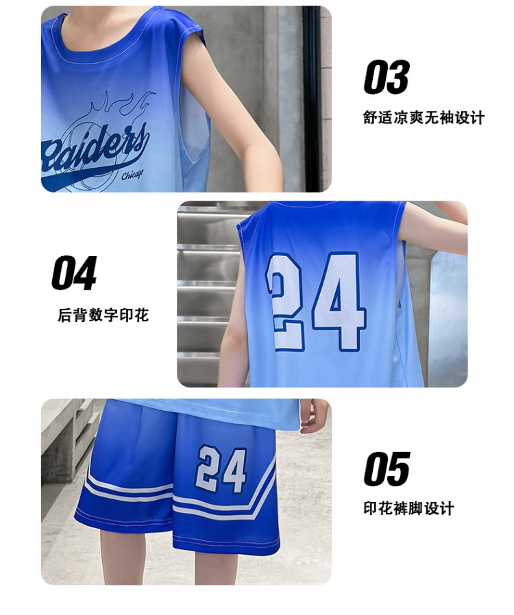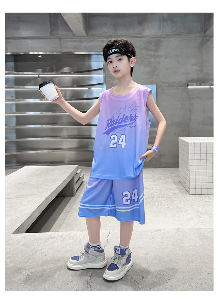 소년 농구 옷 빠른 건조 세트 민소매 여름 조끼 어린이 잘 생긴 소년 여름 옷 중 큰 어린이 스포츠 저지