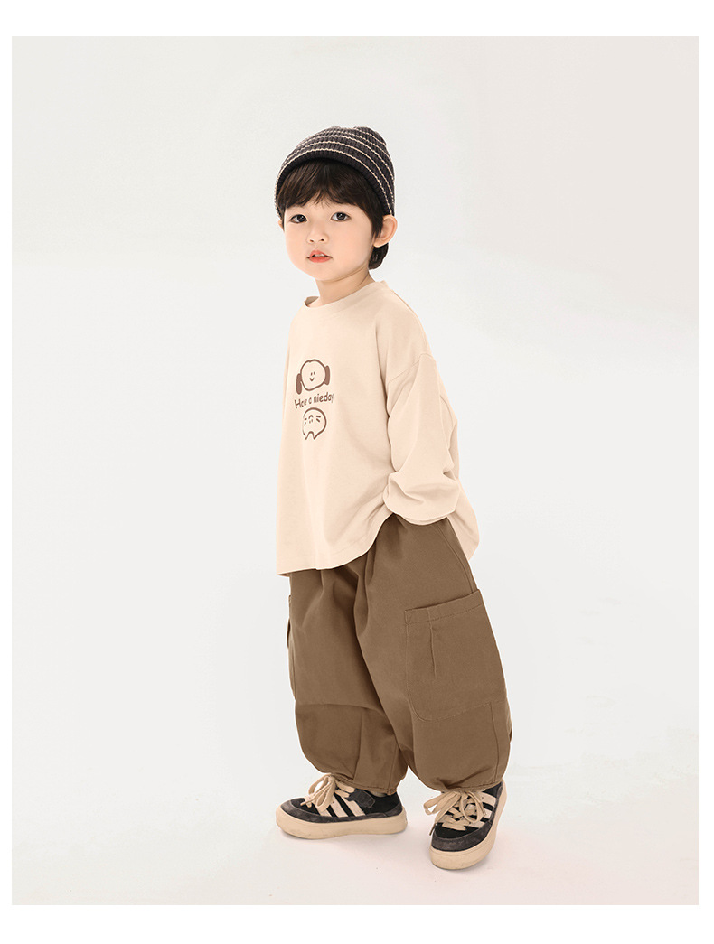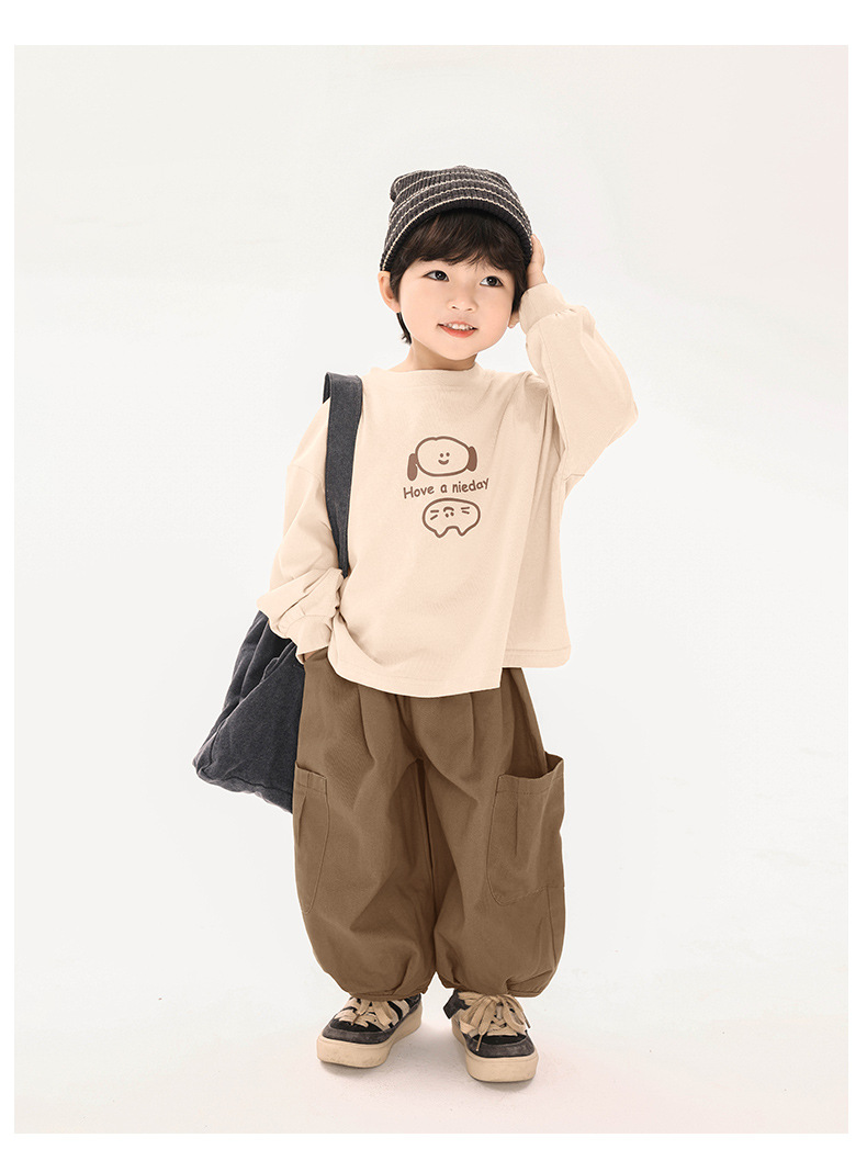 창구 아동복 소년 티셔츠 긴팔 가을 착용 어린이 한식 봄 · 가을 순면 탑 중소형 어린이를위한 만화베이스 셔츠스토어 가기