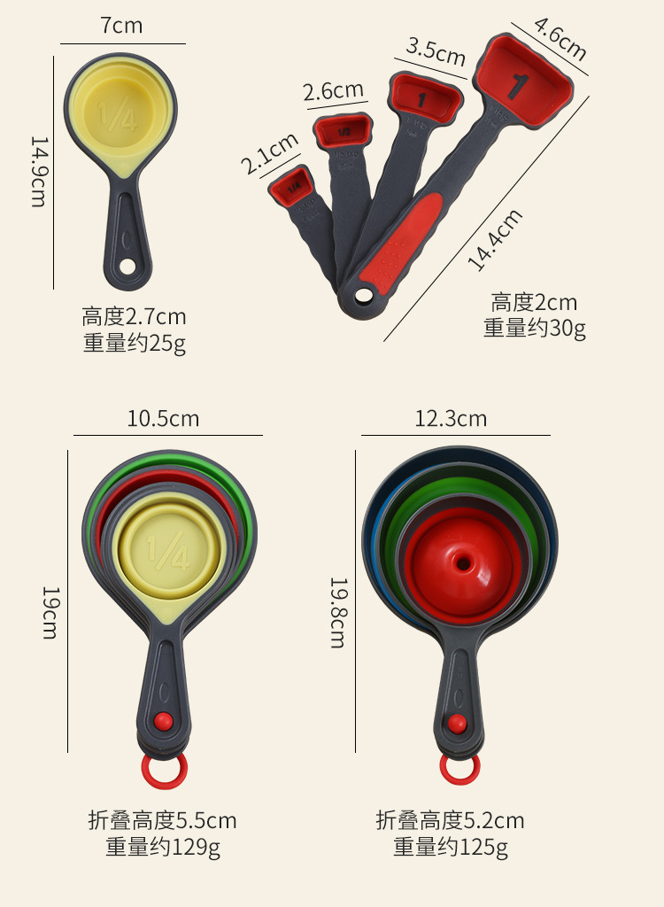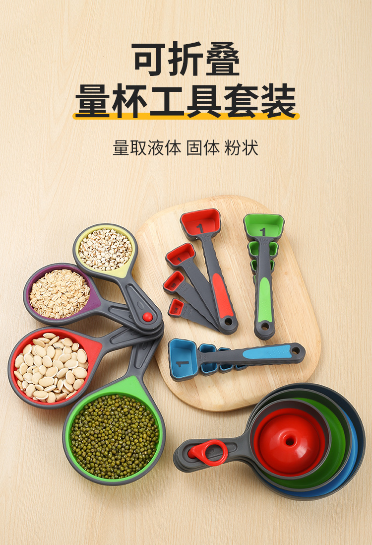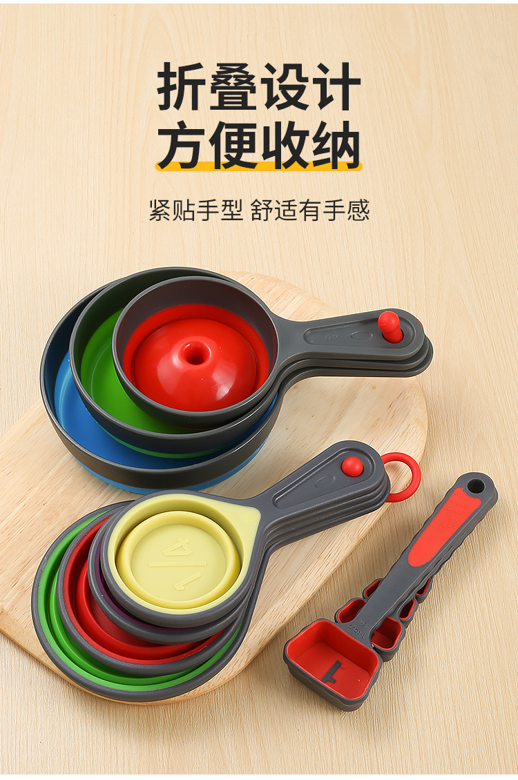 측정 컵 세트 척도 망원경 측정 컵 측정 숟가락 세트 주방 베이킹 도구 8 피스 세트