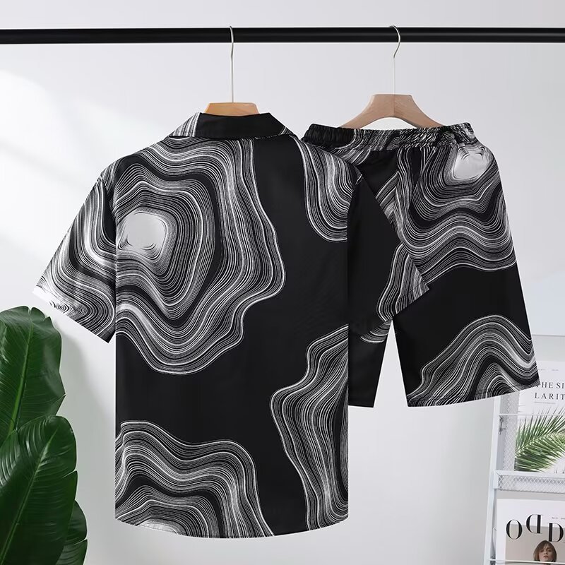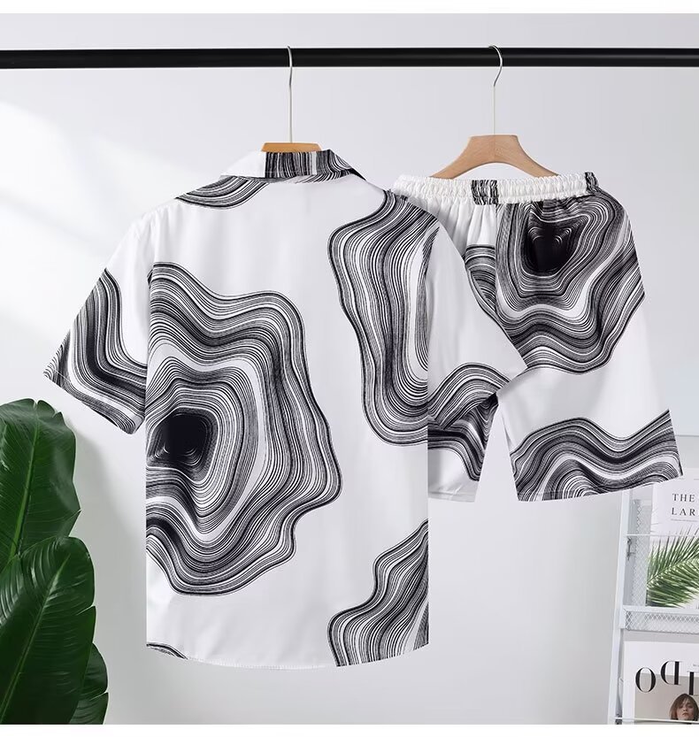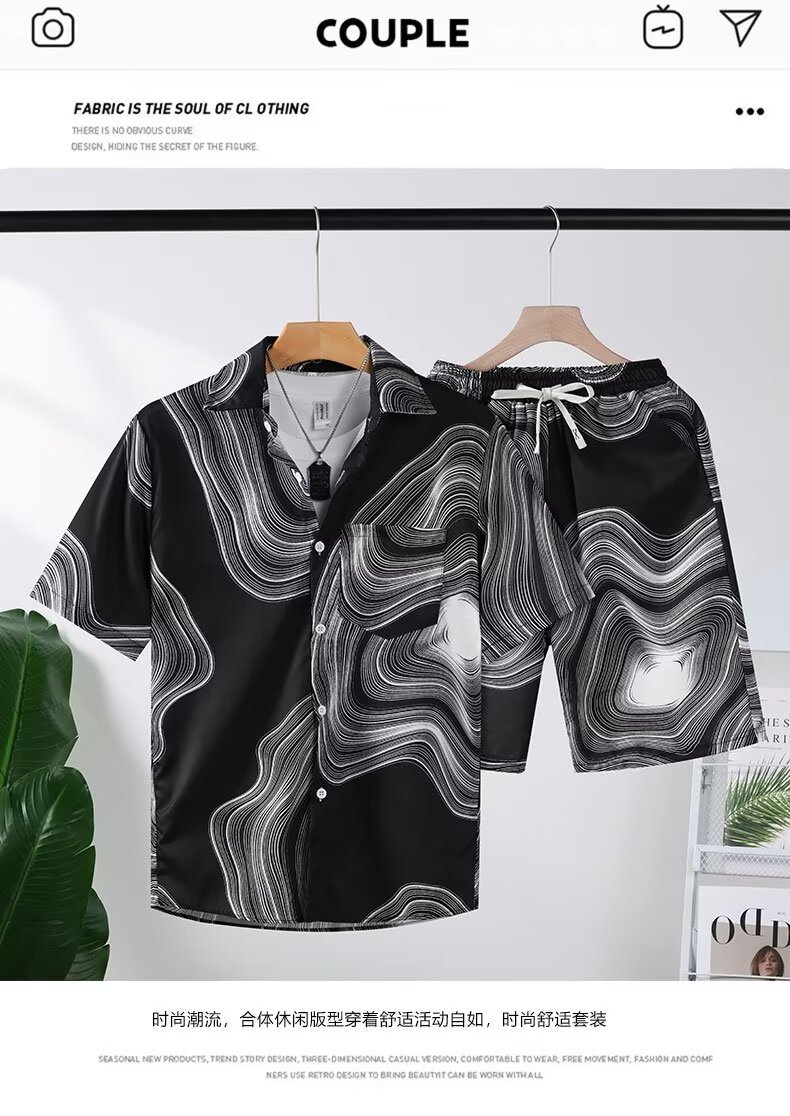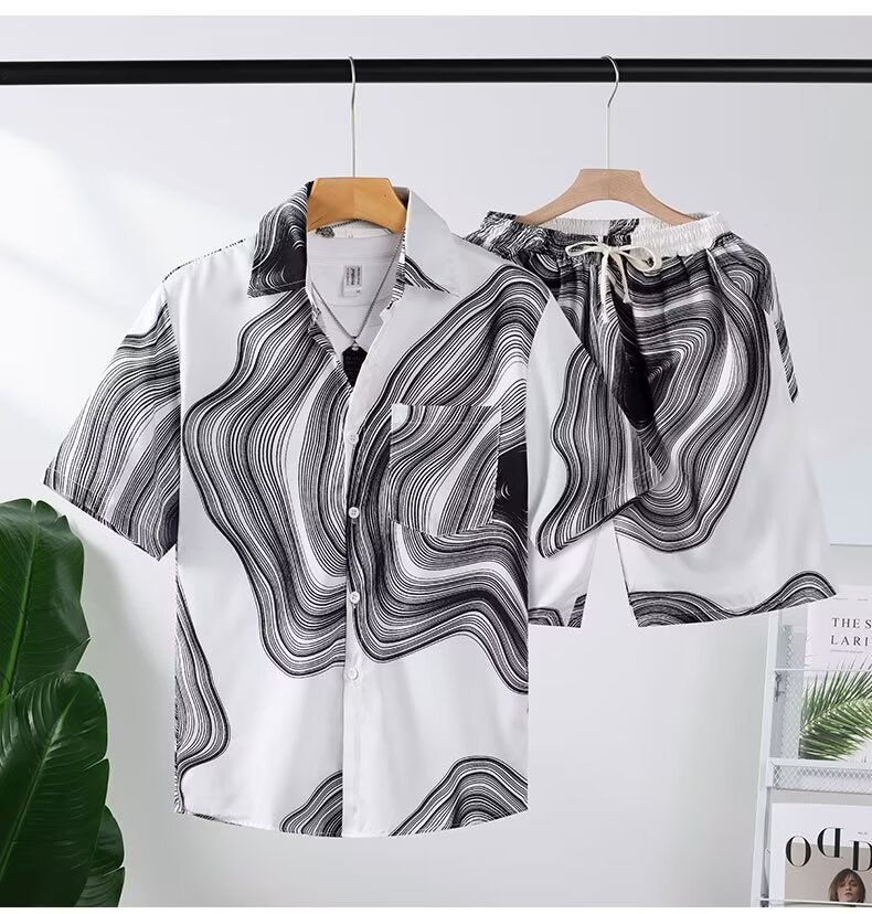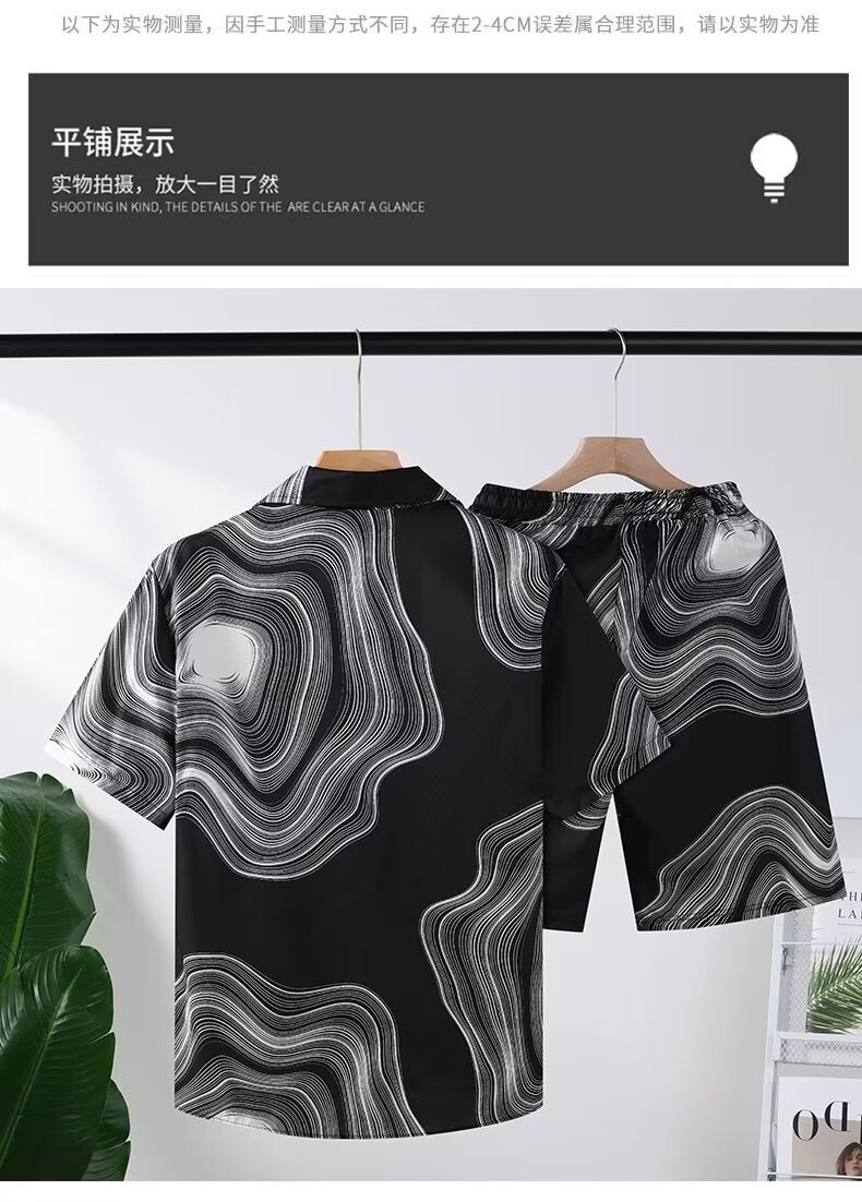 2024 새로운 세트 남성 여름 느슨한 캐주얼 십대 반팔 셔츠 반바지 간단한 옷 세트스토어 가기