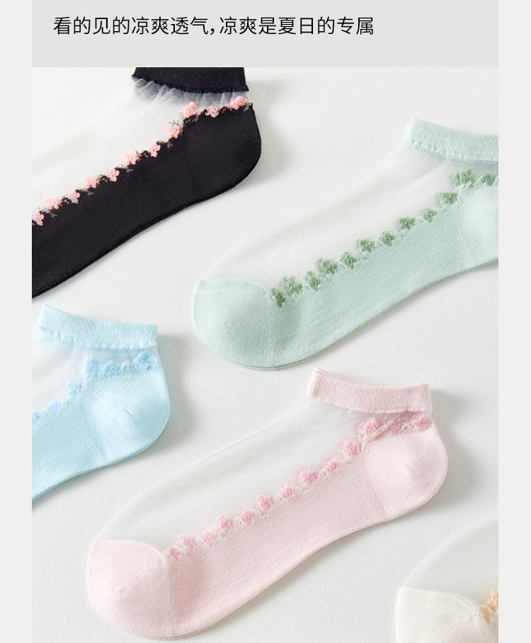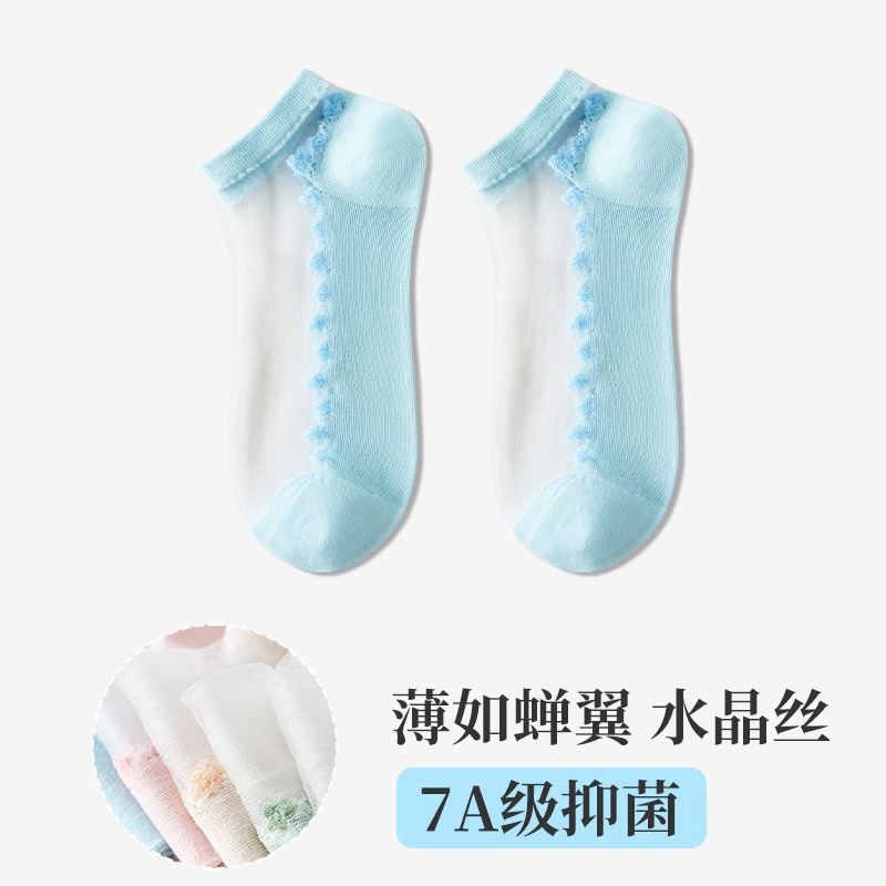 양말 여성용 봄과 여름 스틸 와이어 얇은 투명 순수 코튼 하단 얕은 유리 아이스 실크 스타킹 크리스탈 레이스 짧은 양말스토어 가기
